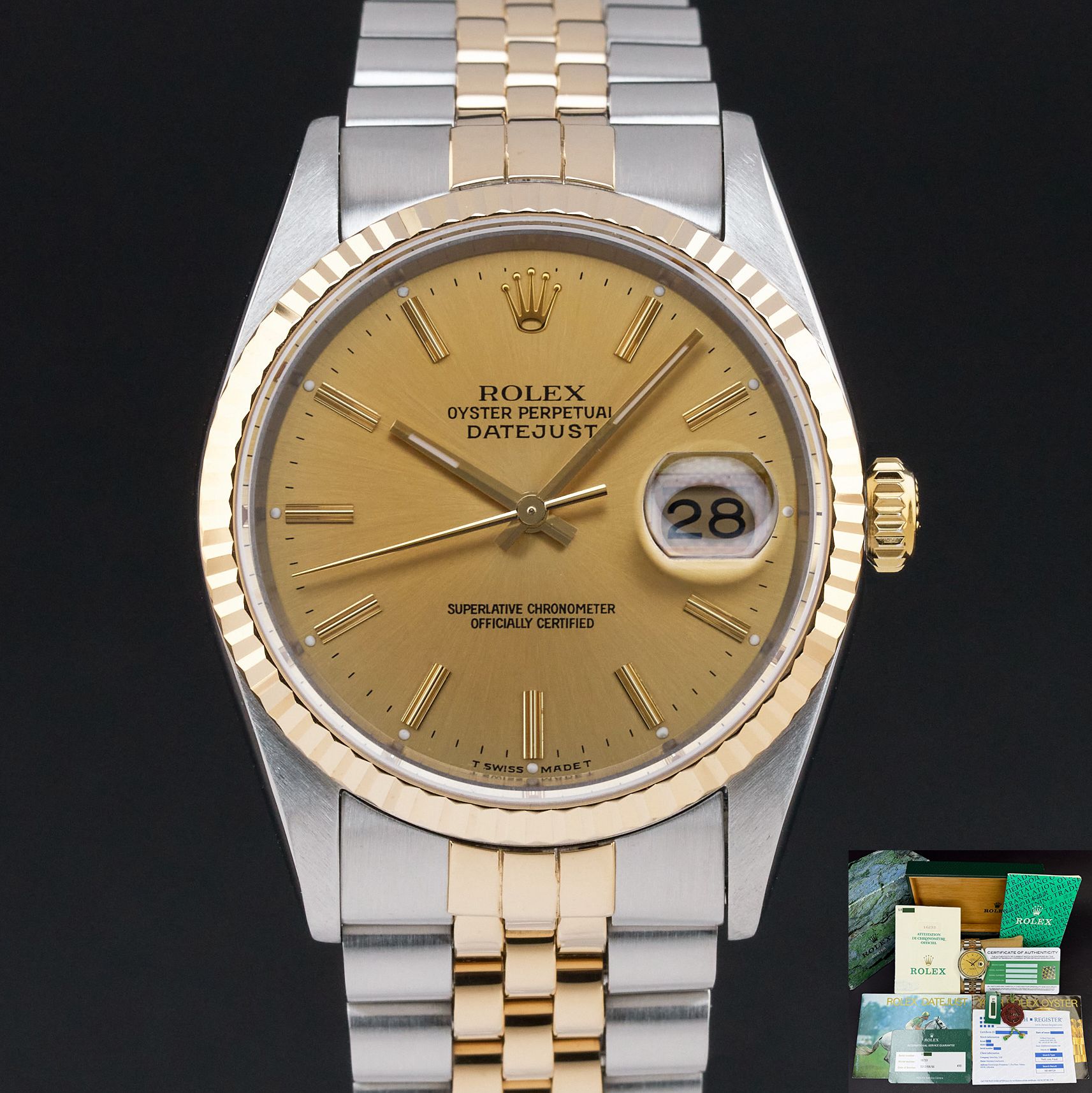 Rolex Datejust 36 Rolex Datejust, 16233, 36mm, 1994, Two-Tone, Champagne dial, Fullset, 1y warranty