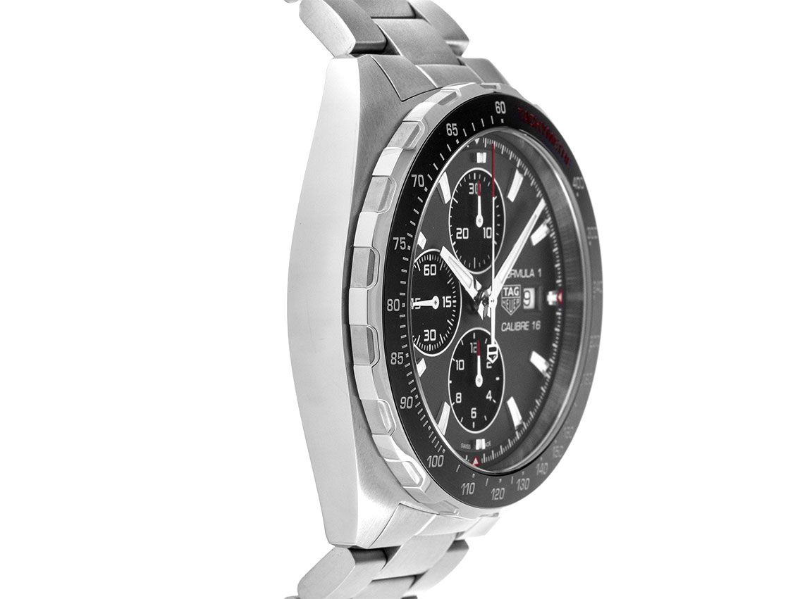 Tag Heuer Formula 1 Stahl Keramik Automatik Chronograph Armband StahlGehäuse Edelstahl poliert und satiniert, Gehäusedurchmesser ohne Krone 44mm, Gehäusehöhe 15,0mm. Lünette Edelstahl mit schwarzem Keramik Inlay und gravierter Tachymeterskala. Armband Edelstahl poliert und satiniert, Sicherheitsfaltschließe Edelstahl mit Hersteller-Logo. Zifferblatt grau mit aufgesetzten Edelstahl Leuchtindexen und Edelstahl Leuchtzeigern. Uhrwerk Automatik, Chronograph, Tag Heuer Calibre 16, Gangreserve ca. 42 Stunden. Anzeige von Stunde und Minute über Zeiger aus der Mitte, kleine Sekunde mit Sekundenstopp zur sekundengenauen Einstellung der Uhrzeit bei 9 Uhr, Datumsanzeige mit Schnellverstellung bei 3 Uhr. Saphirglas kratzfest. Krone verschraubbar mit Hersteller-Logo. Boden Edelstahl verschraubt und graviert mit Tag Heuer Relief. Gewicht der Uhr inklusive Armband 201g, Länge des Armbandes inklusive Gehäuse 215mm. Wasserdicht bis 20 ATM. Referenznummer: CAZ2012.BA0876, ID: P229426000126H-4800, Artikelnummer: 10000084294. Original Tag Heuer Box mit Umkarton und Garantie Papiere von Juli 2021 sowie Beschreibung und Watchregister Auszug von Januar 2026, The Watch Register Zertifikat / ohne Eintrag (Internationale Datenbank für verlorene oder gestohlene Uhren), Full Set. Wie Neu. Lieferzeit sofort.
