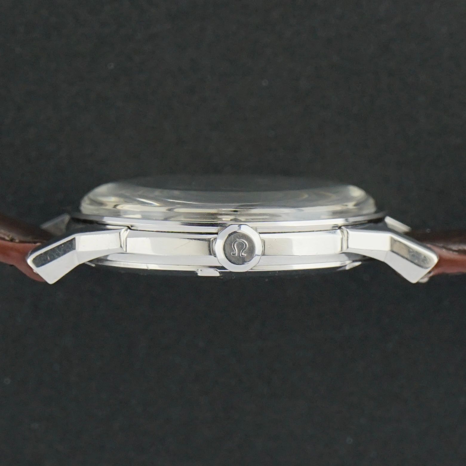 This 1966 Omega Constellation Chronometer features the iconic “Pie Pan” dial with a white sunburst finish, accented by dauphine hands that enhance its vintage character. The 34mm stainless steel “Dog Leg” case, named for its lugs design, retains its original decagonal crown. Inside is the caliber 564 automatic movement, serviced in January 2026 and running perfectly. Paired with a top-grain brown leather strap with crocodile motive, this piece is in excellent overall condition, ideal for both collectors and daily wear.Year of production: 1966