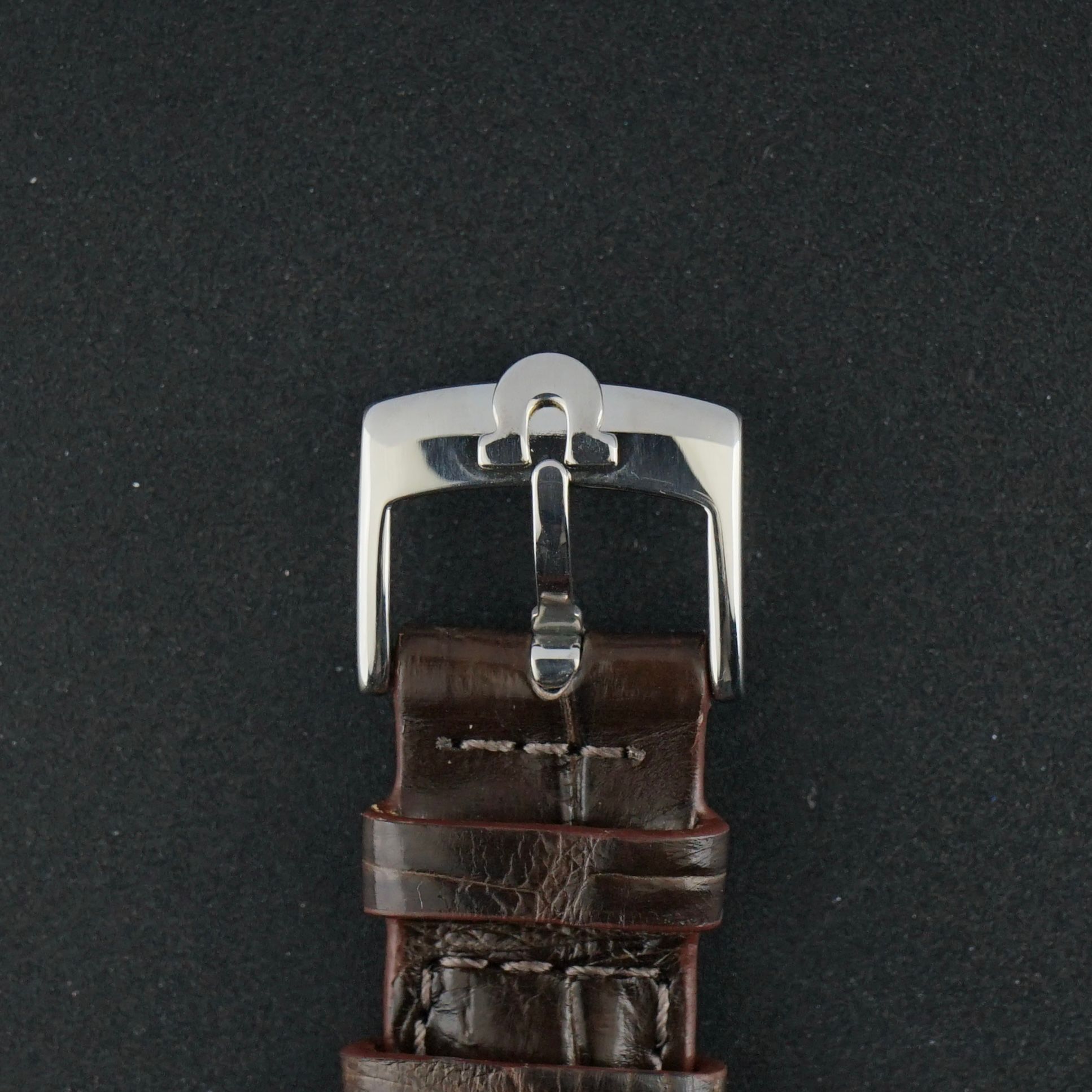 Strap: A top-grain brown leather strap with crocodile grain and light glossy finish. (Fits a 12 to 20cm wrist)
