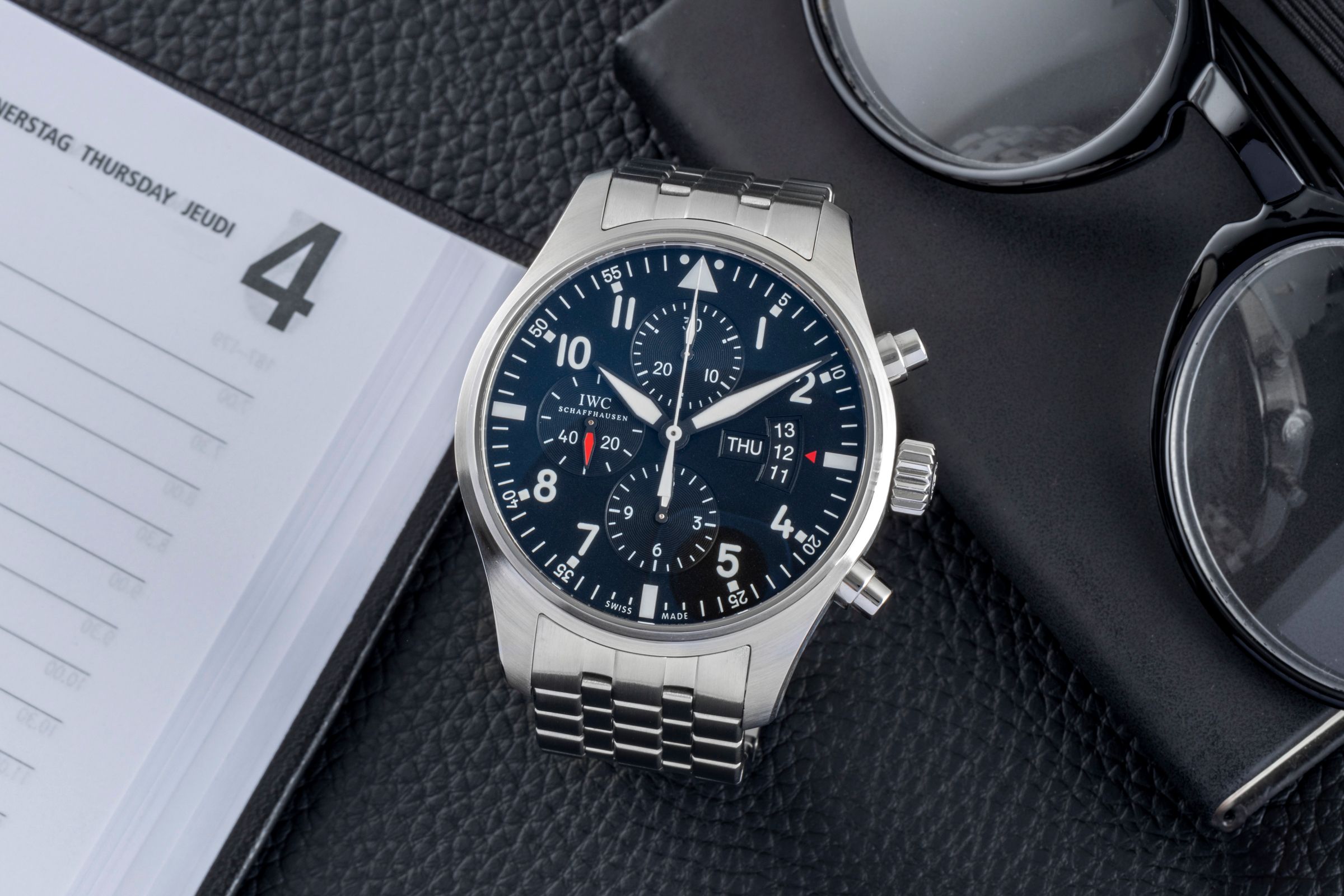 Functions: Chronograph, Date, Pilot's watch, Weekday display