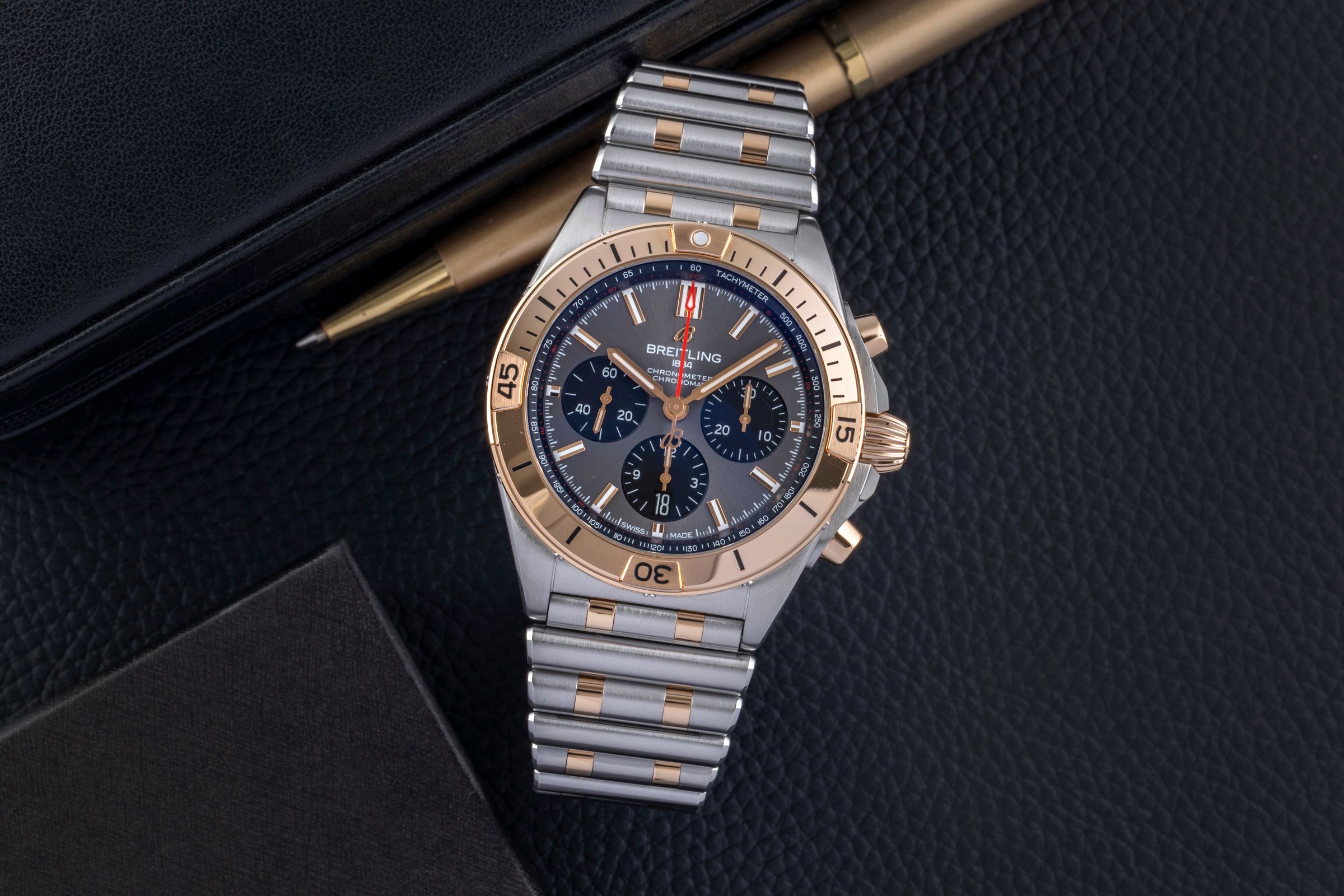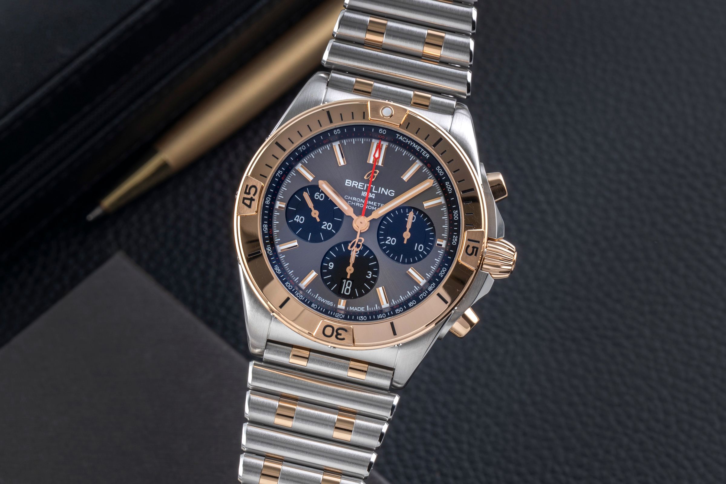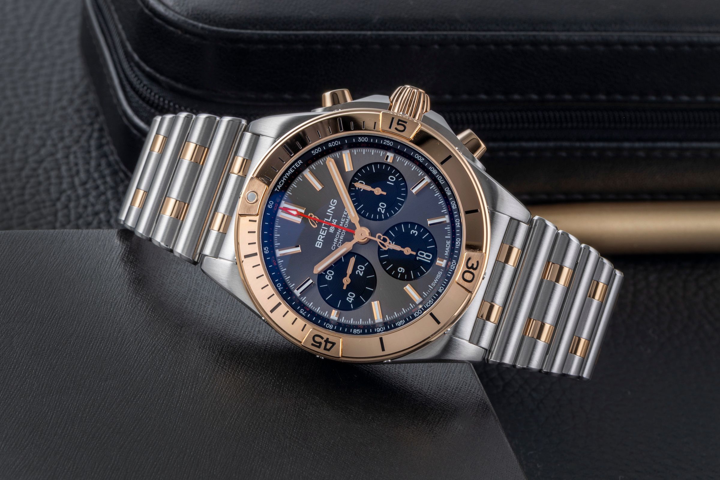 Alternative title: Breitling UB0134101B1U1 Chronomat B01 42 Stainless Steel / Red Gold / Anthracite; Breitling Chronomat 42 B01 Stahl / Gold Automatik Ref. UB0134101B1U1 NP: 13400€ [2507423]