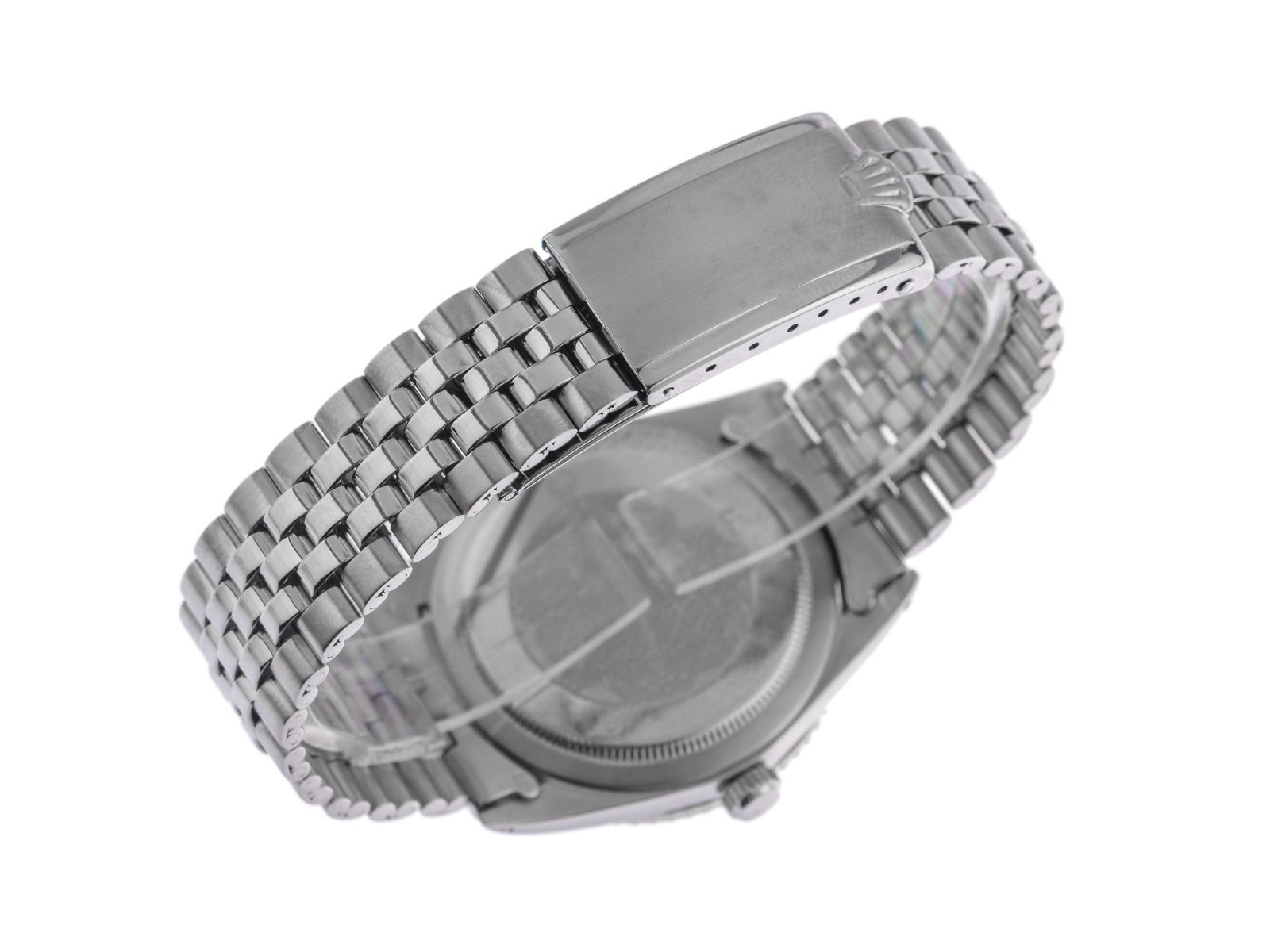 Caja de acero pulido y satinado, diámetro de la caja sin corona 36mm, altura de la caja 11,8mm. Bisel de 18kt oro blanco estriado y pulido, con división de 60 minutos, giratorio por ambos lados. Pulsera Jubilé de acero pulido y satinado, cierre desplegable de acero con logo del fabricante. Esfera color plata con índices en oro blanco aplicados y agujas en oro blanco. Movimiento automático, cronómetro, calibre de manufactura Rolex 1570 con 26 rubíes. Indicador de horas, minutos y segundos a través de agujas centrales con parada de segundos para un ajuste preciso de la hora, visualización de la fecha bajo lupa a las 3 en punto. Cristal de plexiglás abombado. Corona atornillada con logo del fabricante. Fondo de acero atornillado. Peso del reloj incluyendo la pulsera 84g, longitud de la pulsera incluyendo la caja 180mm. Número de referencia: 16250, número de caja: 1450XXX, ID: P221896000126H-8500, número de artículo: 10000084184. Con control de marcha y completa restauración exterior de enero de 2026. Caja original de Rolex con caja exterior y estuche de cuero, descripción, sello de cronómetro Rolex, extracto de registro de fecha y reloj de enero de 2026, certificado de The Watch Register / sin entrada (base de datos internacional para relojes perdidos o robados). Superoferta, inversión con potencial de aumento de valor, pieza de colección extremadamente rara. Muy buen estado. Tiempo de entrega inmediato.