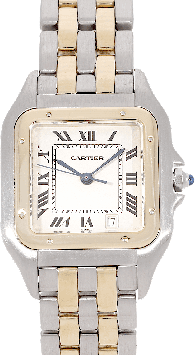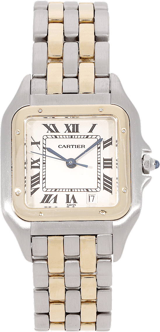 Cartier Panthère, Reference: 110000R, Gender: Unisex, Size: 27mm, Dial color: Beige, Strap material: Stainless Steel Yellow Gold, Movement: Quartz, Year: 1993, Condition: Previously worn with some signs of usage. The movement is flawless and the case has been cleaned. watch tested to ensure full functionality. An inspection by our certified watchmakers guarantees its authenticity., Documents: Original papers, CHRONEXT Certificate