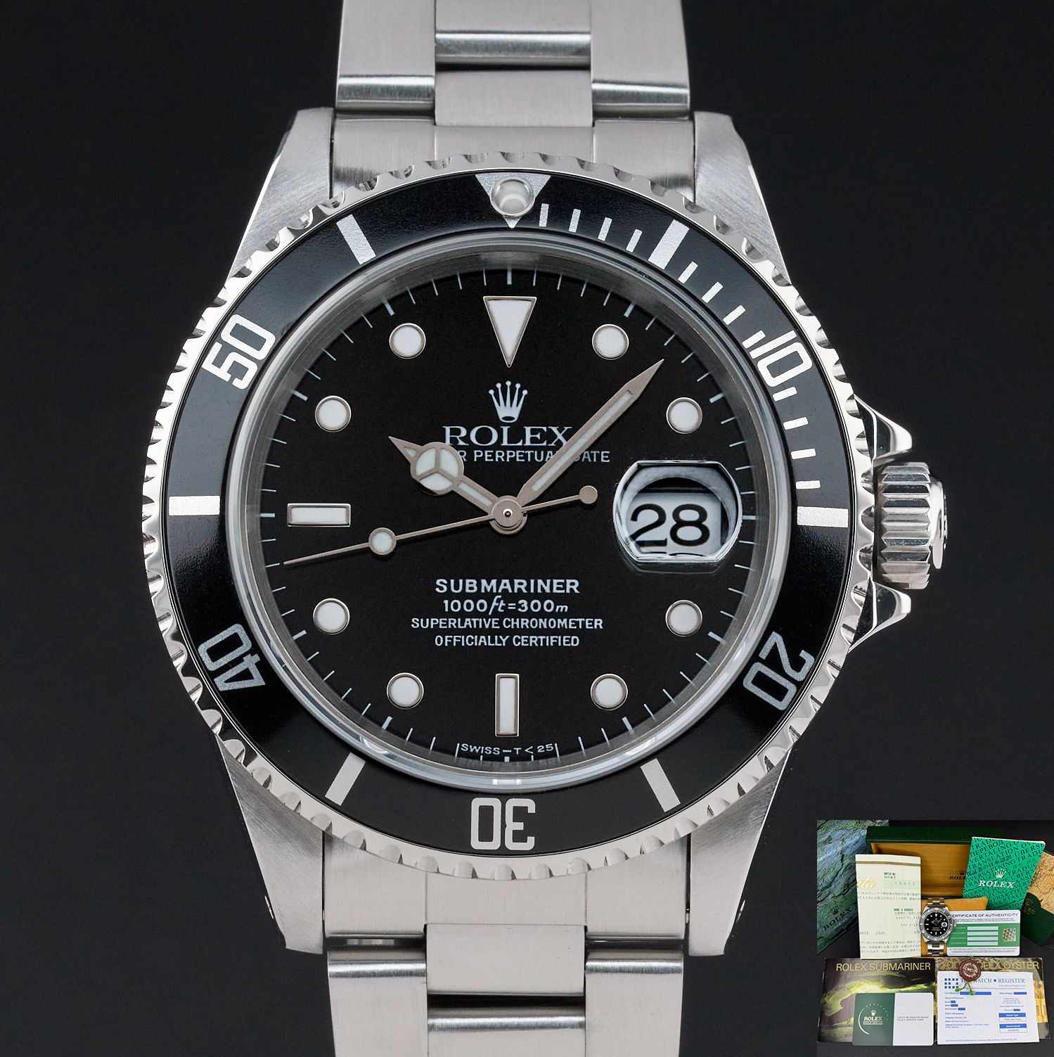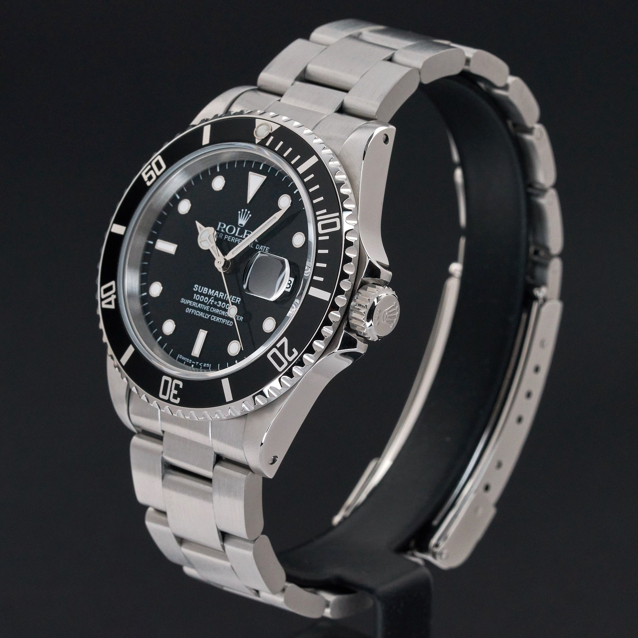 This Rolex Submariner Date 16610 features a Black dial and is crafted from stainless steel, with a production year of 1996.Case No: T49XXXX