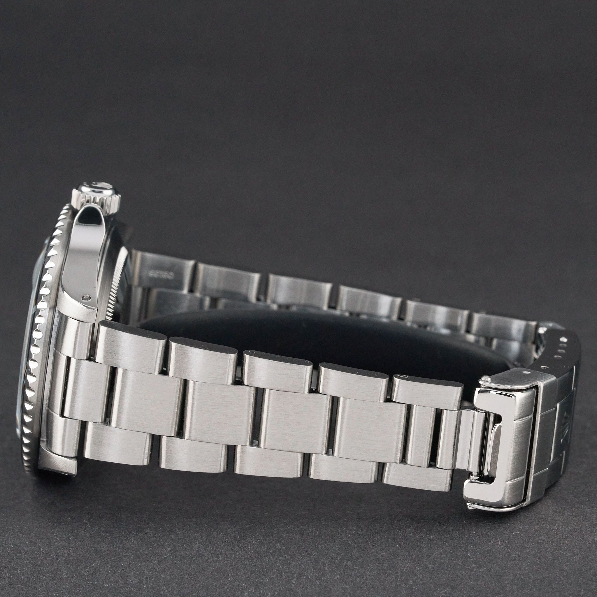 Este Rolex Submariner Date 16610 cuenta con una esfera negra y está fabricado en acero inoxidable, con un año de producción de 1996.