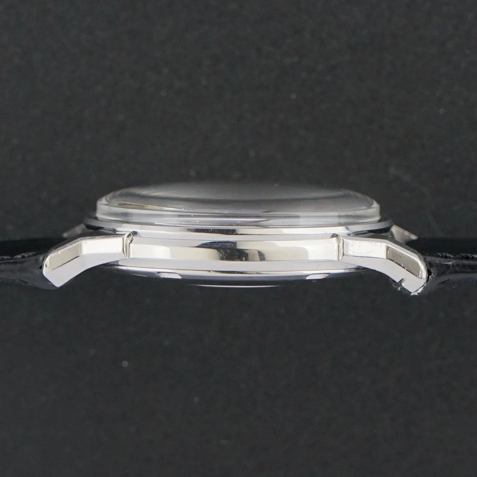 Este Omega Constellation vintage, producido en 1963, presenta un diseño de caja “Dog Leg” combinado con una esfera plana en lugar del estilo más común “Pie Pan”. Alberga el movimiento automático calibre 551, certificado como cronómetro, que fue recientemente revisado en enero de 2026 y ahora funciona dentro de los estándares de cronómetro. Lo hemos combinado con una correa de cuero de grano superior con un motivo de cocodrilo y un acabado brillante ligero. En excelente estado general, esta pieza es un reloj de vestir refinado y elegante.