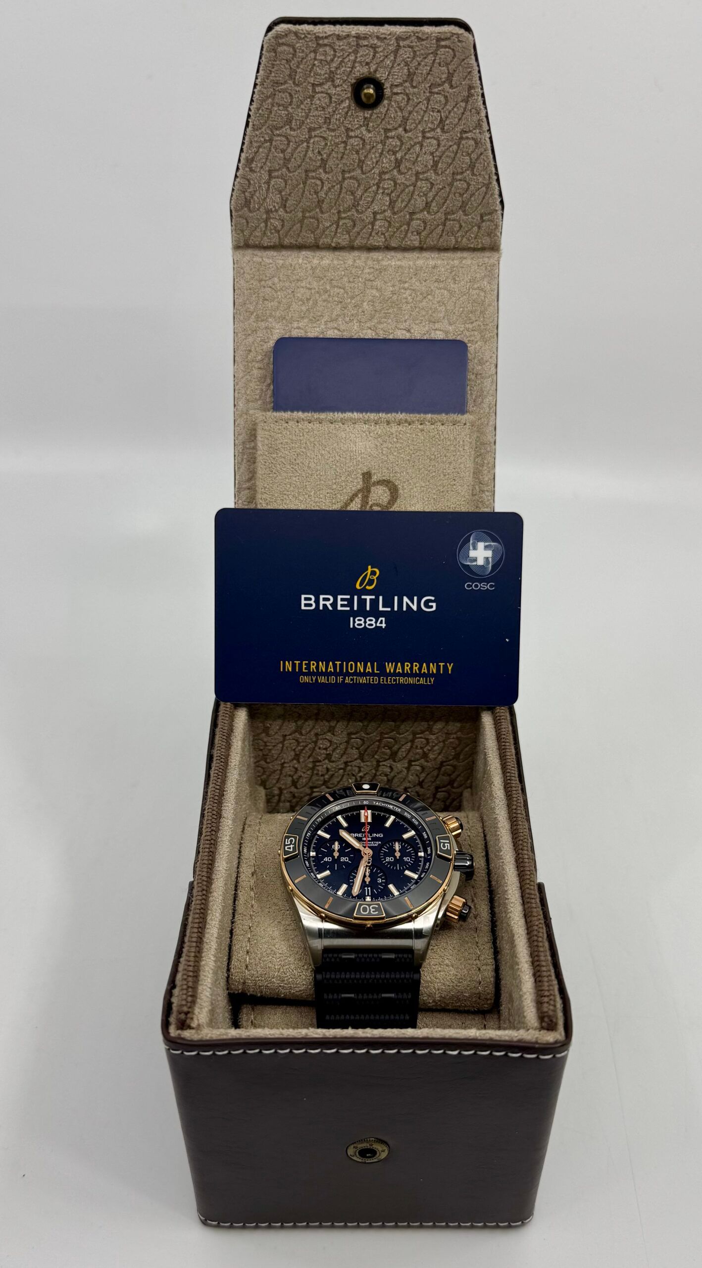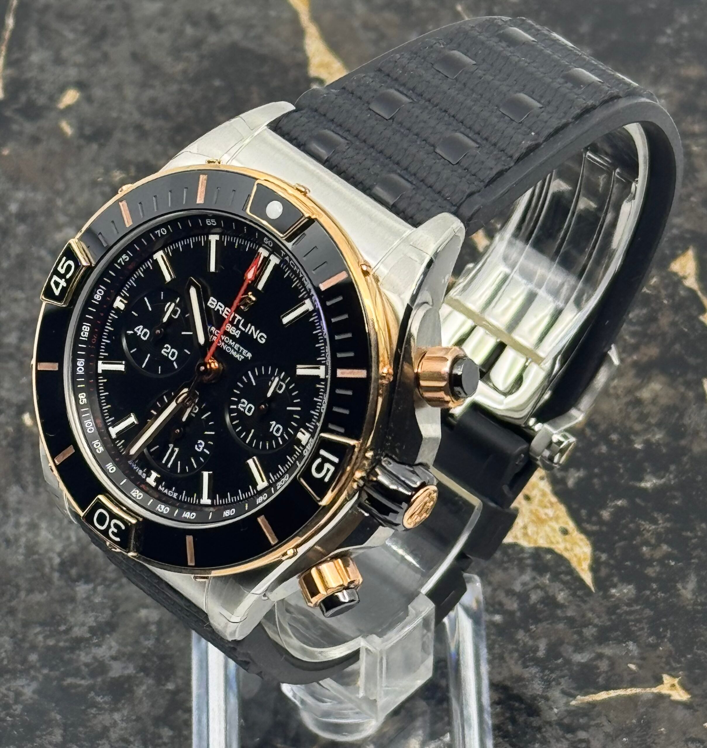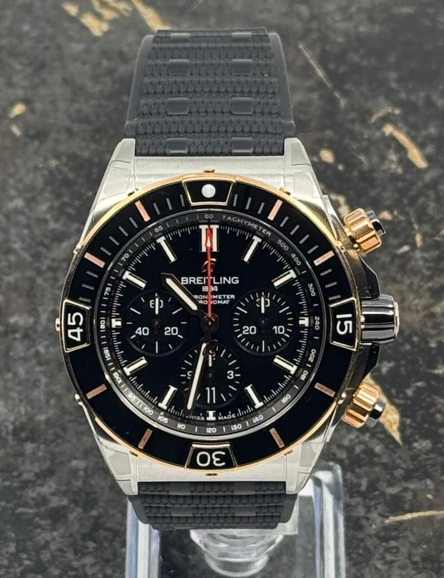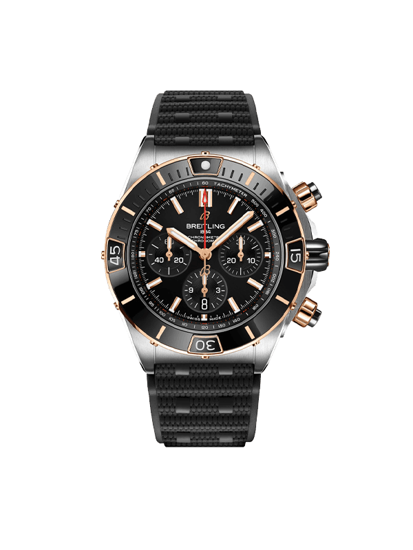 Breitling Super Chronomat B01 44mm - Oro - Esfera de cronógrafo negra - Correa negra - UB0136251B1S1 – Nuevo 2025