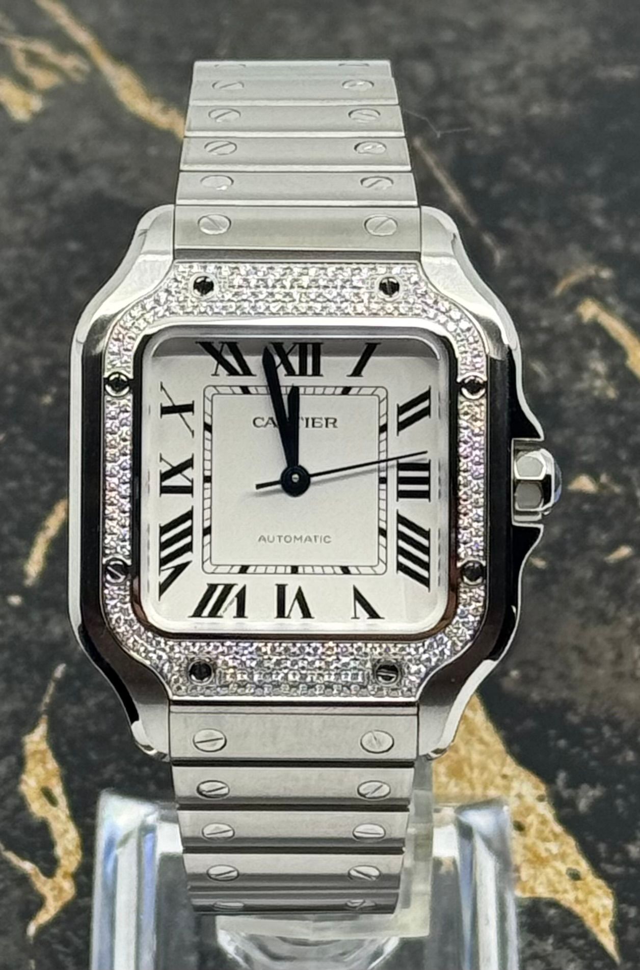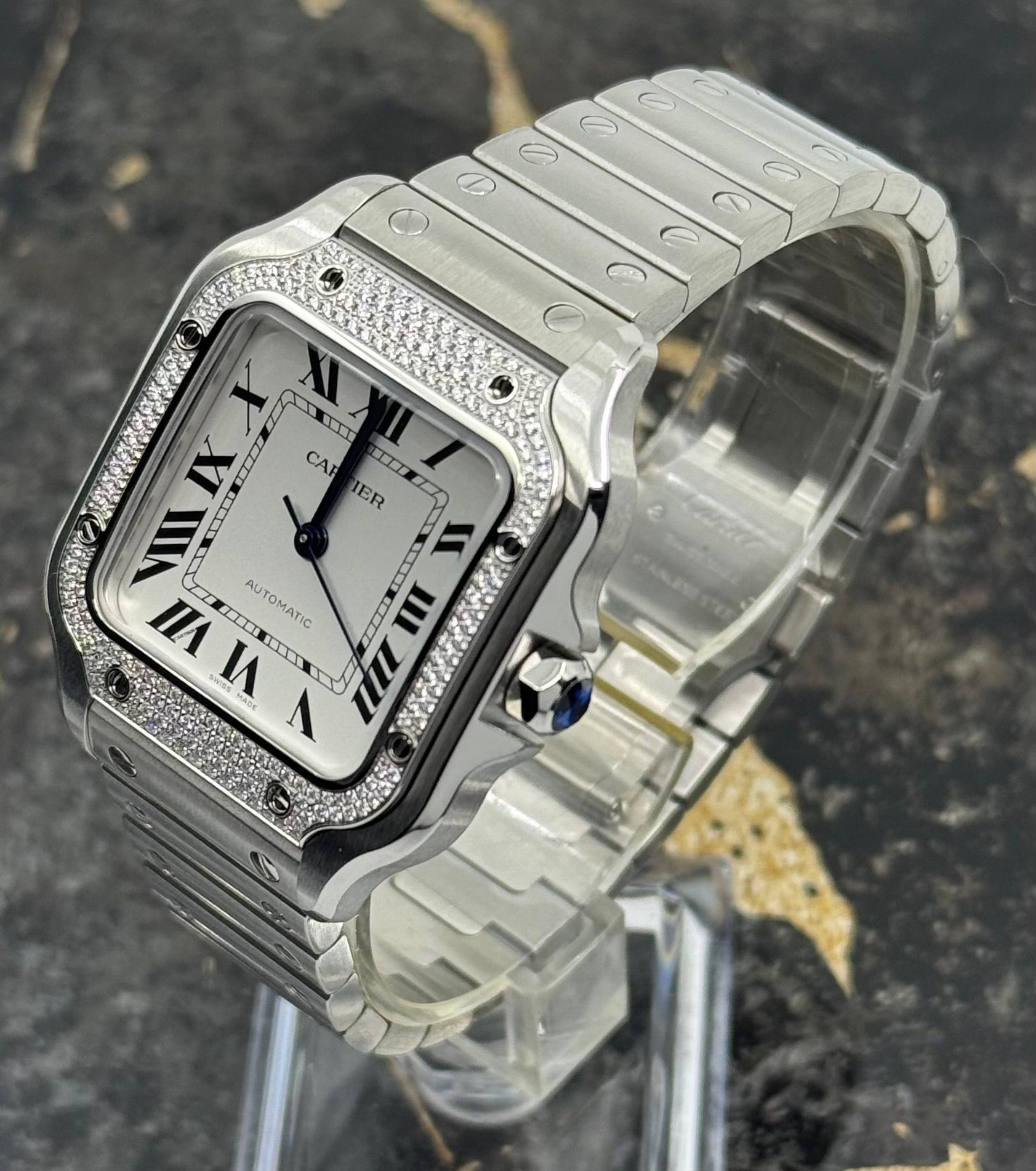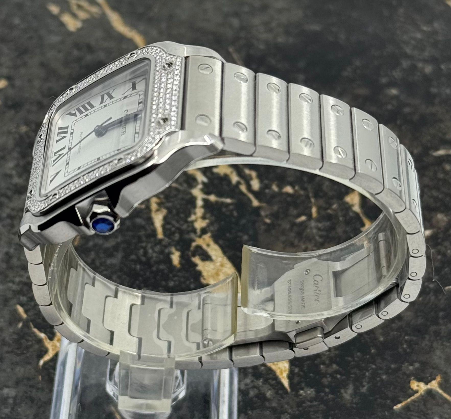 Cartier Santos de Cartier Mediano - Esfera Blanca - Diamantes - W4SA0005 - Nuevo 2025