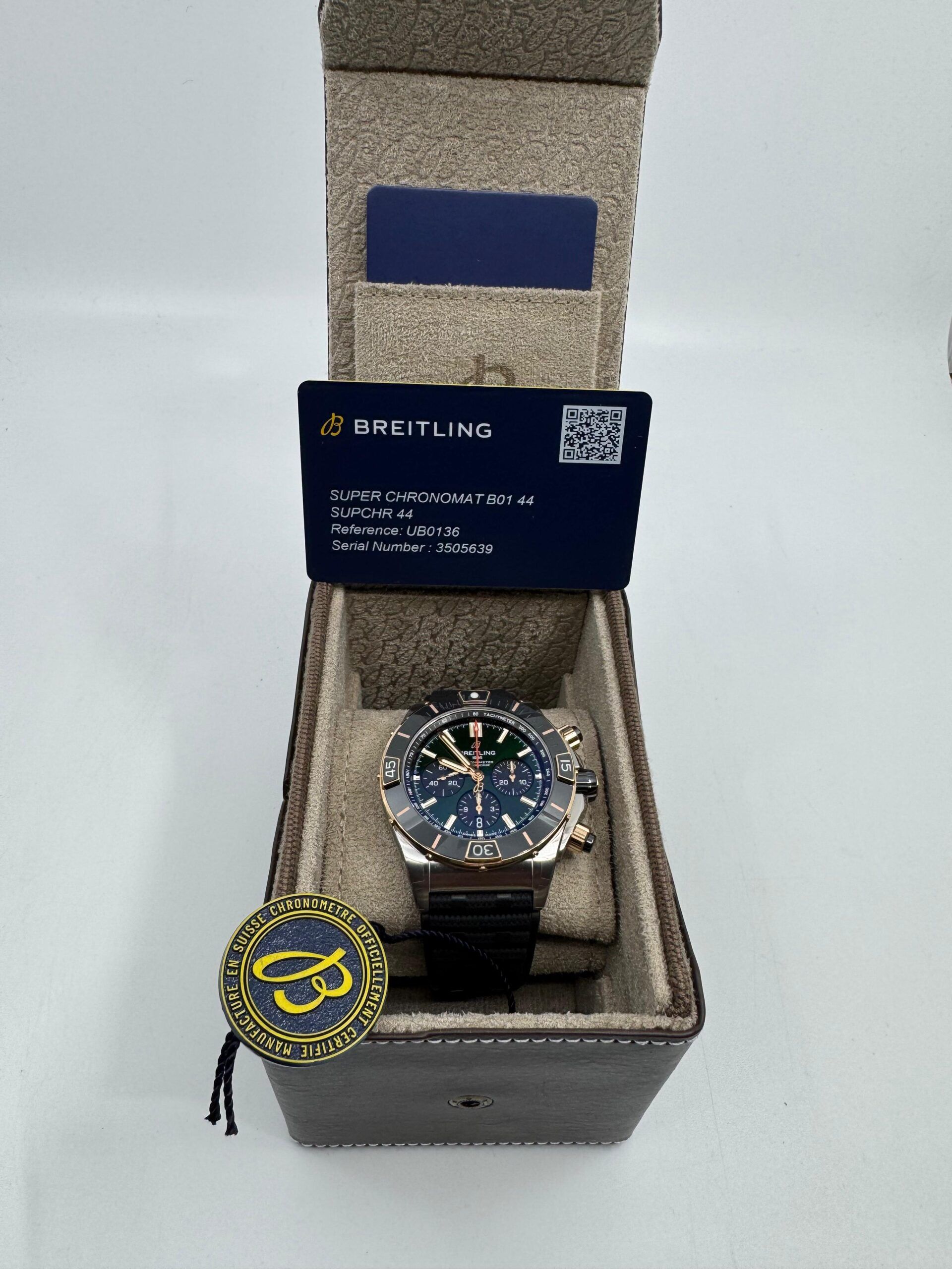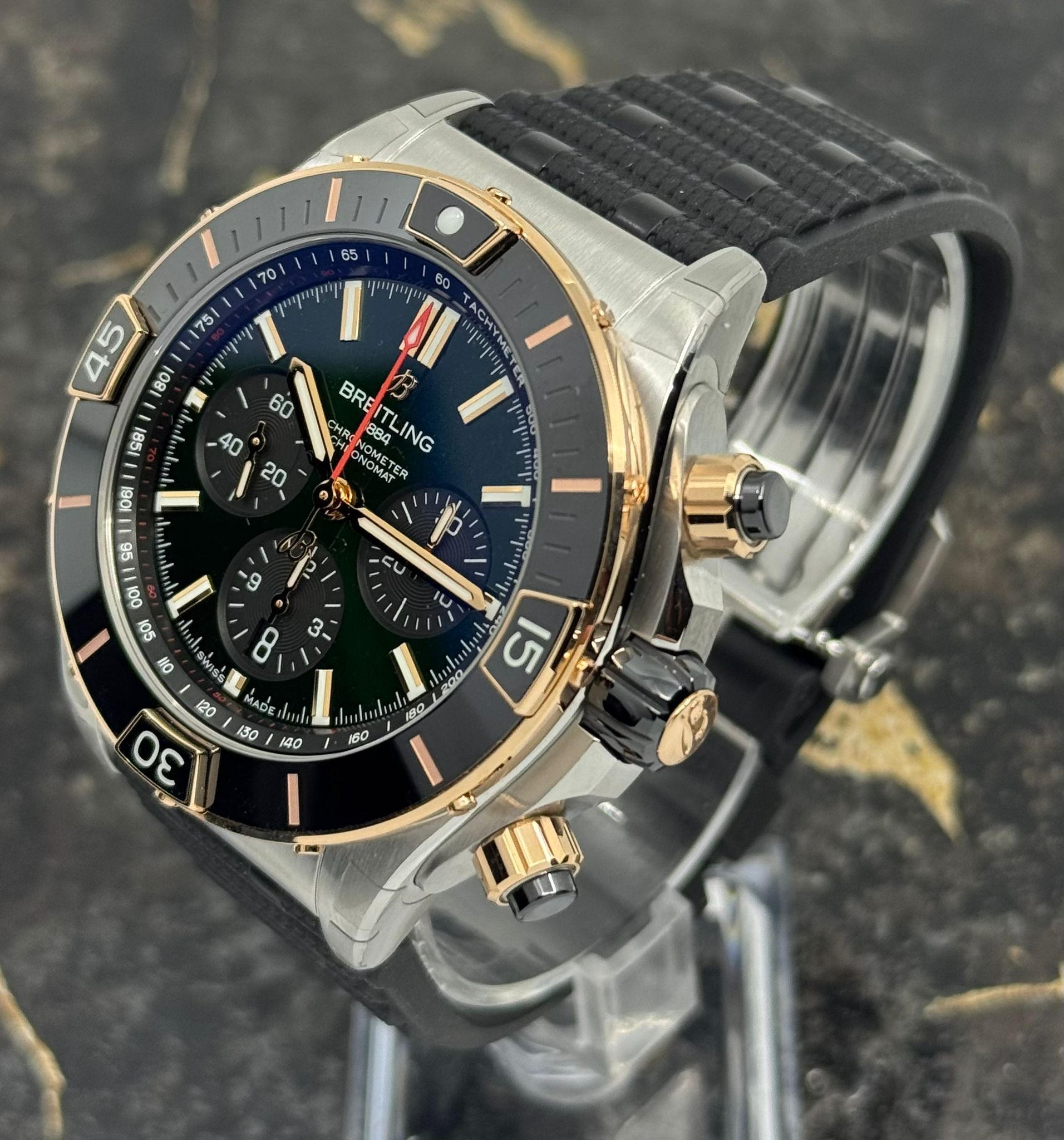 Breitling Super Chronomat B01 44mm - Gold - Green Chrono Dial - Rubber Strap - UB0136251L1S1 - New 2026
