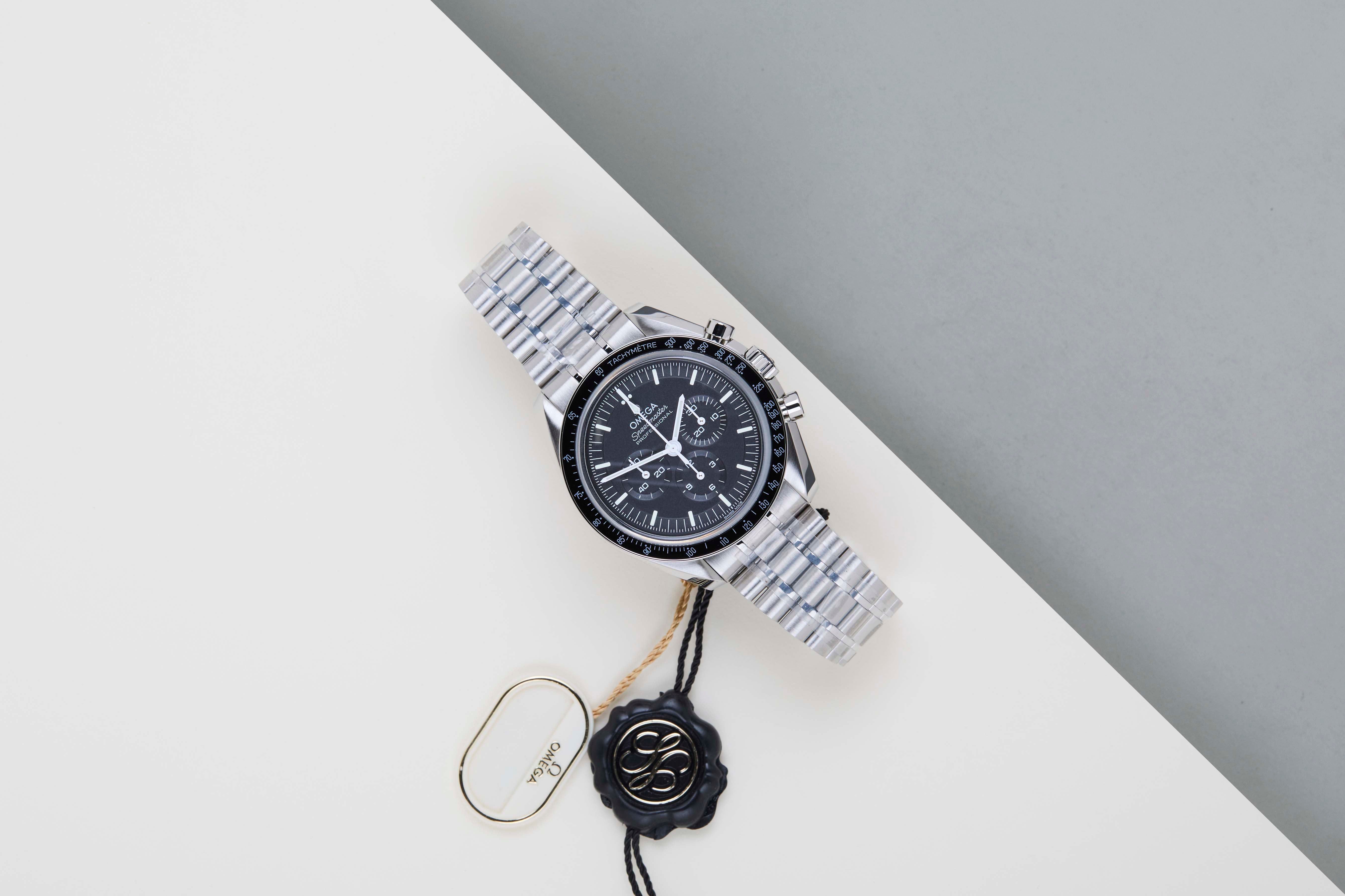 Este Omega Speedmaster Moonwatch Professional está en condiciones de nuevo y sin usar y viene con los documentos de garantía originales de Omega y su caja. Además, el reloj aún tiene garantía internacional de Omega hasta enero de 2031.