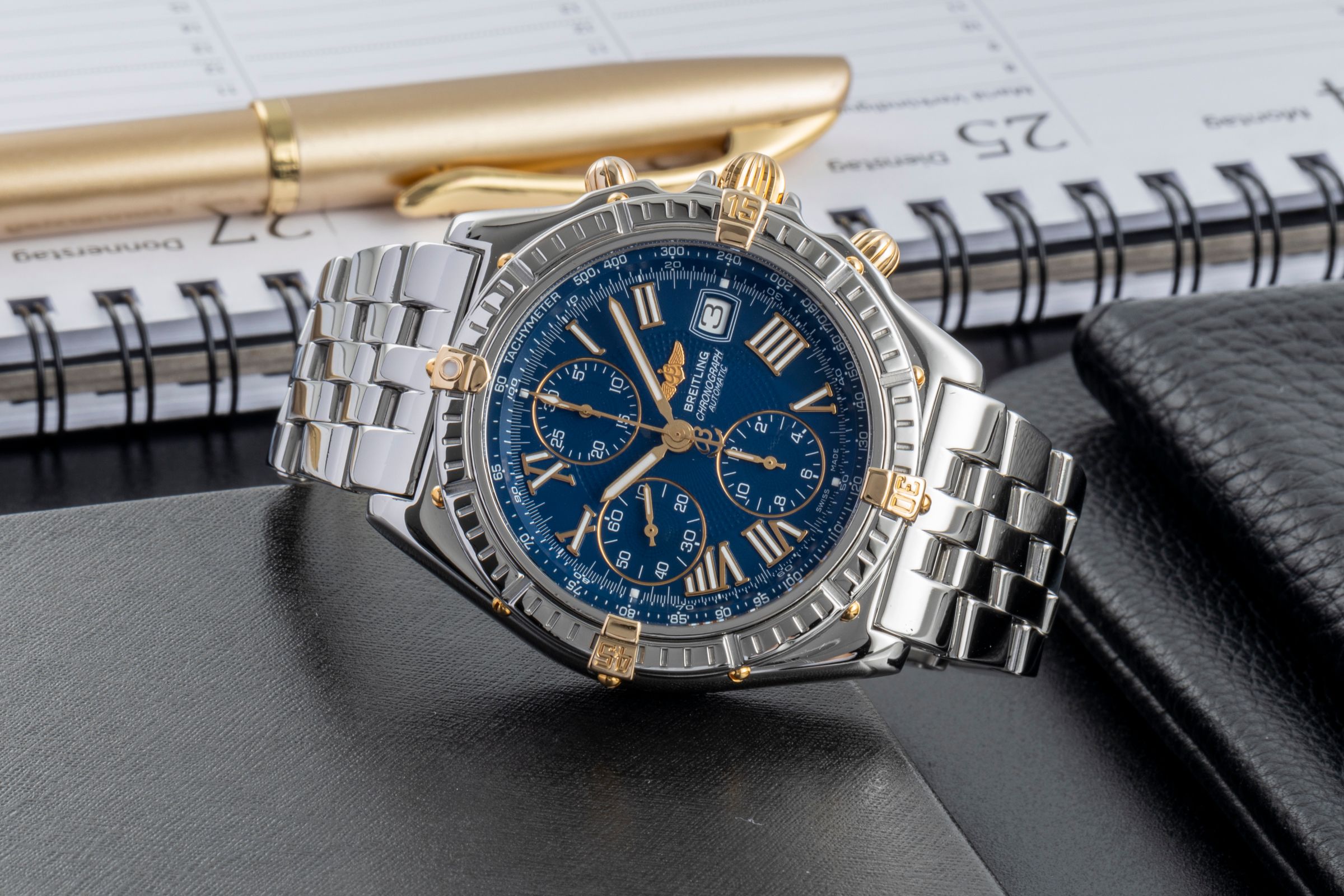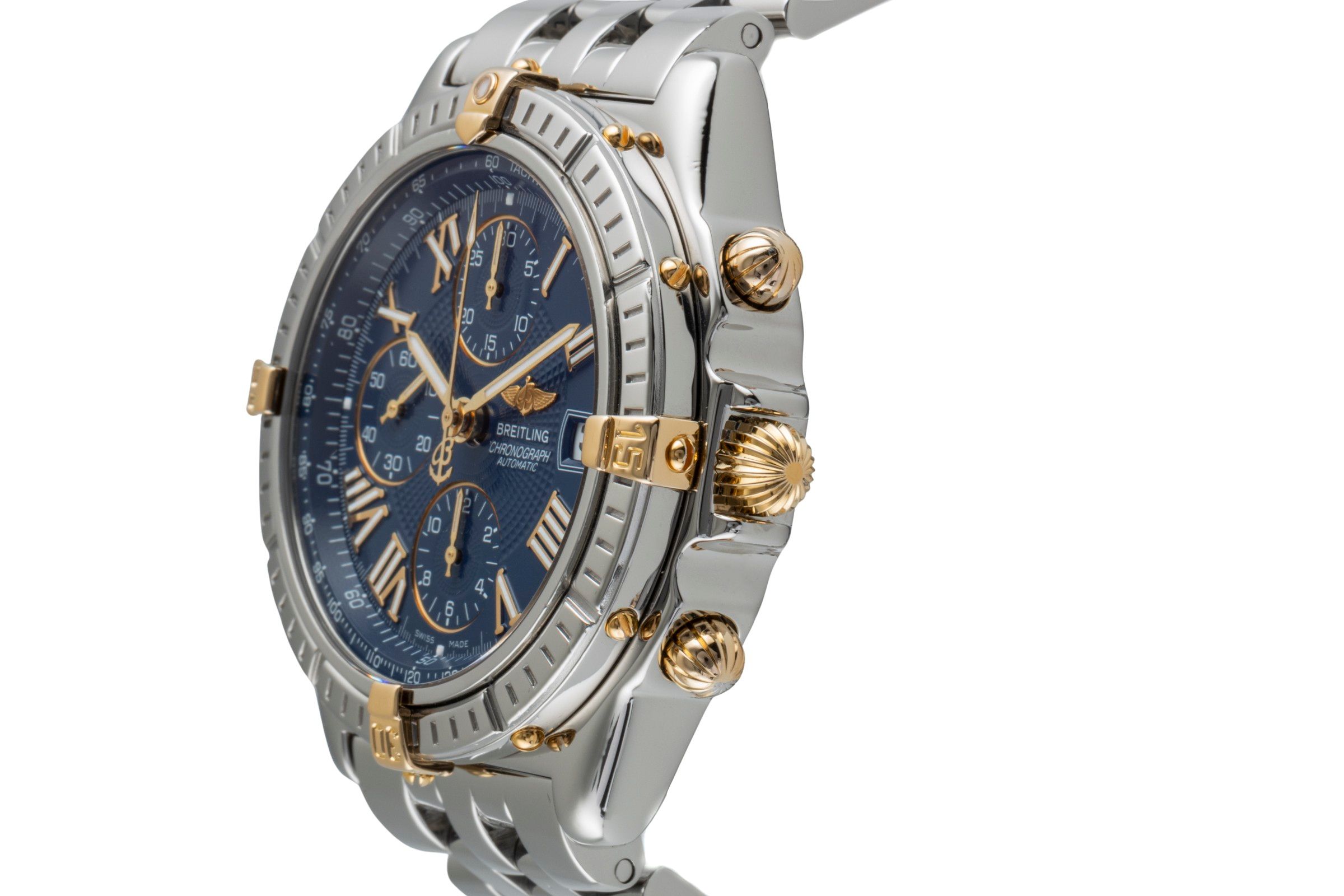 Alternative title: Breitling B13055 Crosswind Racing; Breitling Crosswind Chronograph Stahl / Gold Automatik Herrenuhr B13055 B&P 1999 [2600042]