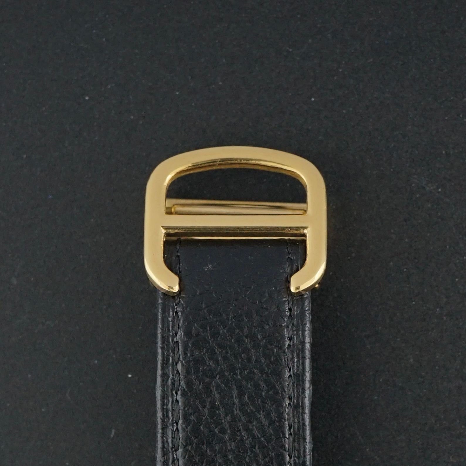 Este Cartier Tank Vermeil Must vintage fue producido en la década de 1990 y es la variante de tamaño para hombres, también conocida como LM. La caja mide 23,5 milímetros de ancho sin incluir la corona y 31 milímetros de oreja a oreja. Lo que realmente distingue a este reloj es su excepcional estado. La caja conserva completamente su chapado en oro original, con un acabado pulido en la parte frontal y un acabado cepillado vertical en la parte posterior. La esfera está en perfecto estado y presenta un tono champán, con marcadores de hora en números romanos a las 12, 3, 6 y 9 en punto, complementados por una pista de minutos tipo ferrocarril. Las manecillas azules características de Cartier y la corona con cabujón de rubí azul completan el diseño. El reloj viene con una correa de cuero negro nueva con un cierre plegable chapado en oro. En general, esta pieza está en excelente estado y sería un magnífico reloj de vestir.