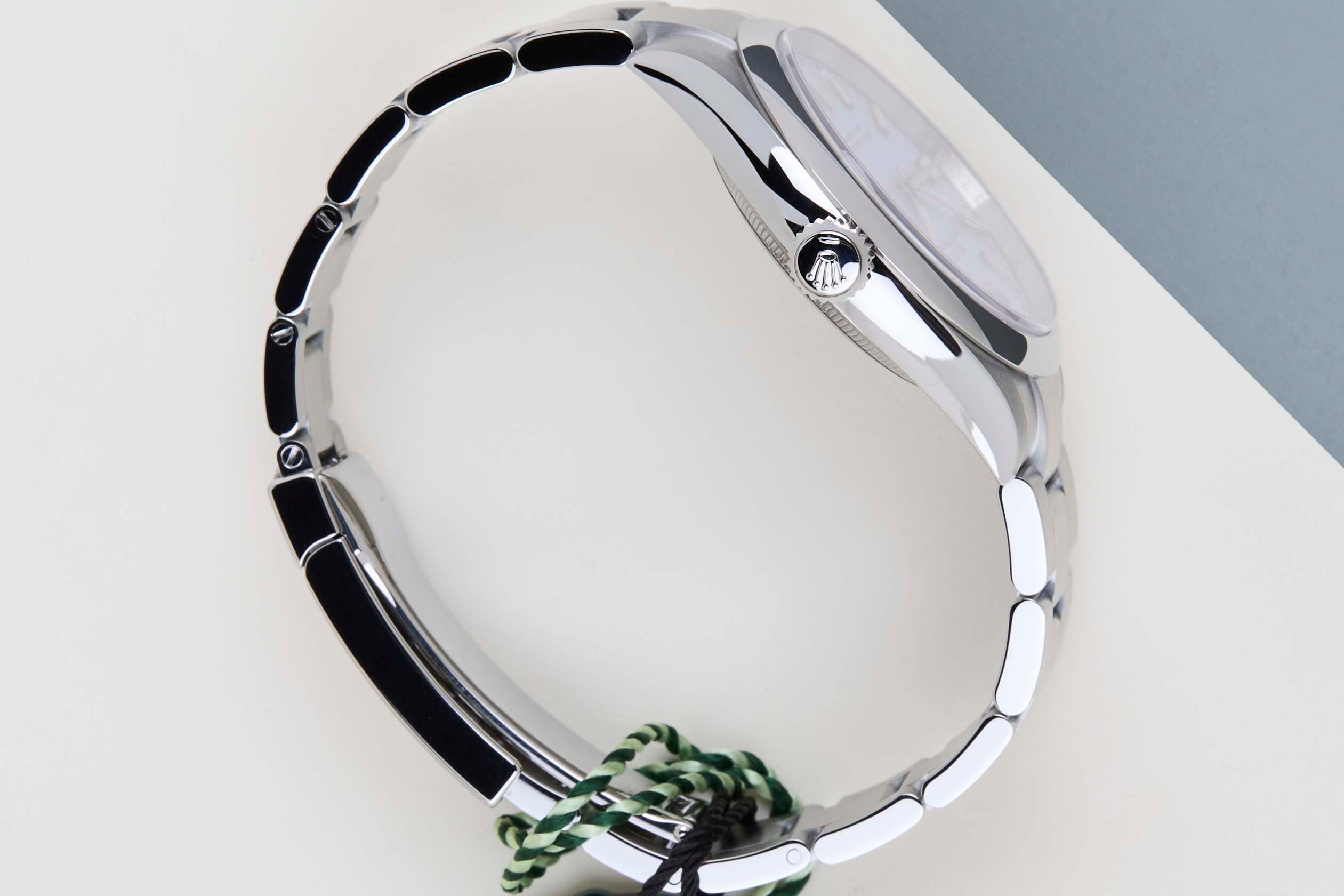 Este Rolex Oyster Perpetual 41 está en condiciones de nuevo y sin usar y viene con la tarjeta de garantía original de Rolex y la caja. Además, el reloj aún tiene garantía internacional de Rolex hasta enero de 2031.