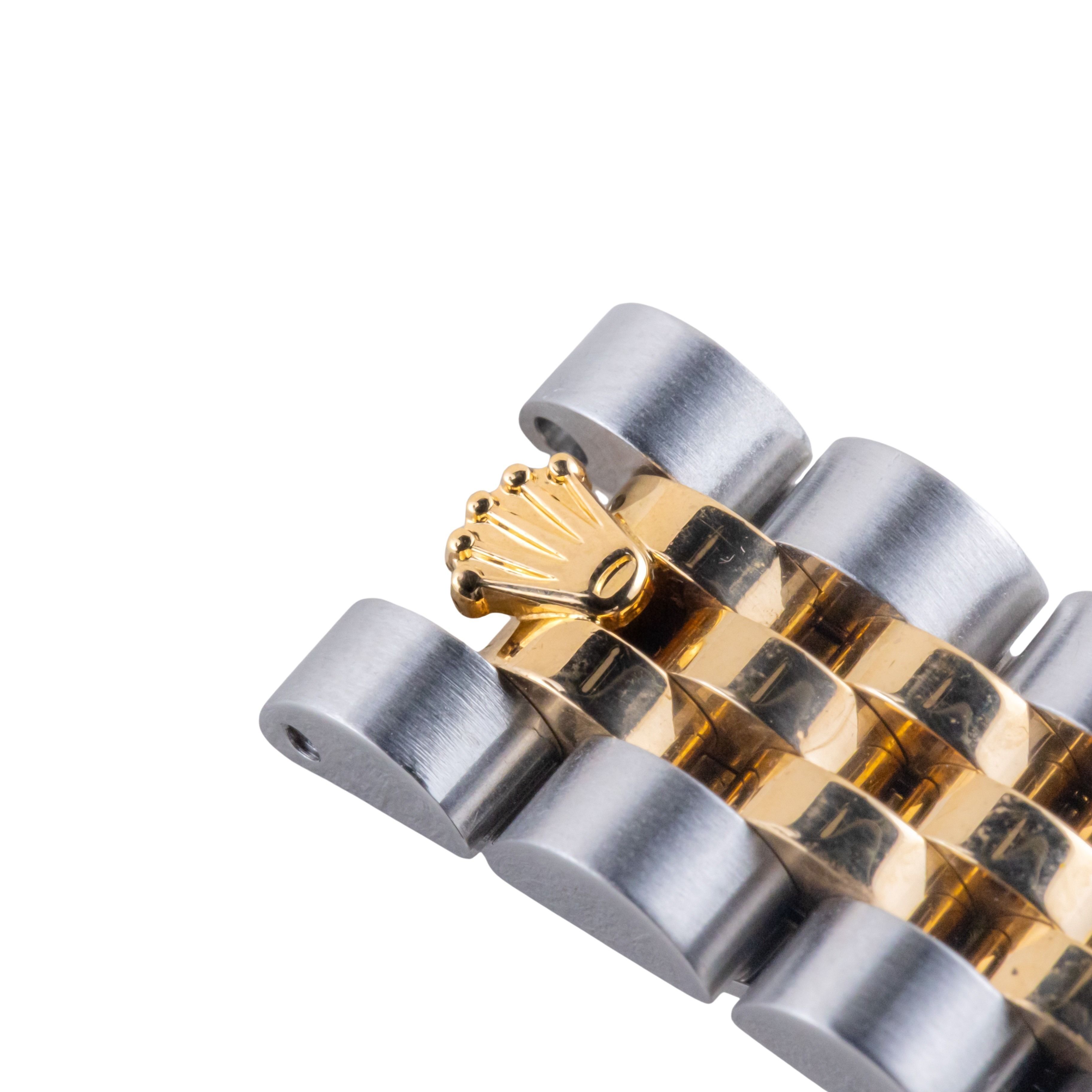 Rolex Oyster Perpetual Lady-Datejust referencia 179173 de 2004, incluyendo set completo. La Lady-Datejust 179173 tiene una caja de 26 mm en oro amarillo y acero inoxidable, una pulsera jubilee bicolor con cierre oculto y un bisel estriado de 18k en oro amarillo. Esta Lady-Datejust 179173 cuenta con un movimiento automático calibre 2235 con función de fecha rápida, un cristal de zafiro resistente a los arañazos y una esfera color champán con manecillas luminova.