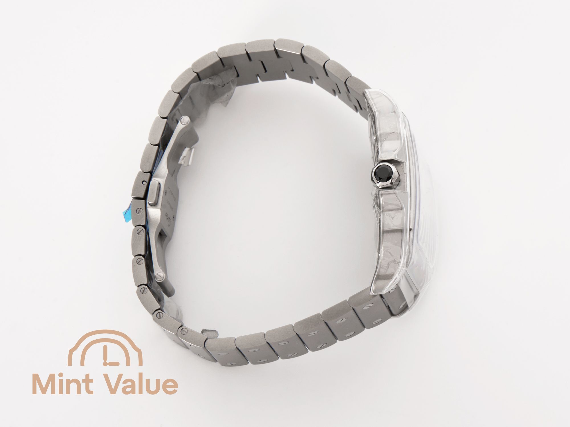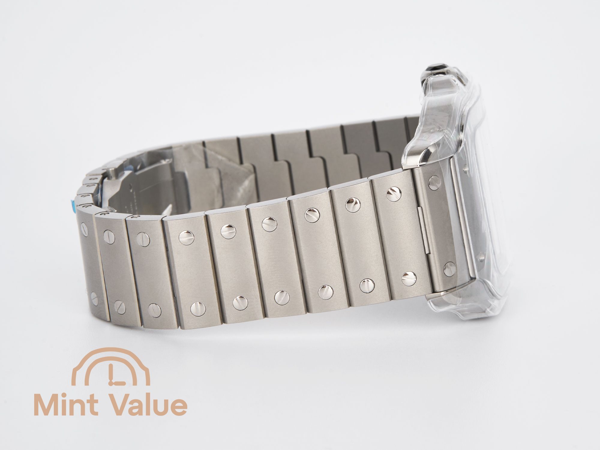 Cartier Santos Large Titanium White Dial — Ref. WSSA0089A contemporary interpretation of one of watchmaking’s most recognizable silhouettes, the Cartier Santos Large WSSA0089 merges historic design with advanced materials. Executed entirely in titanium, the watch introduces a technical, modern character while preserving the unmistakable geometry that has defined the Santos for over a century.