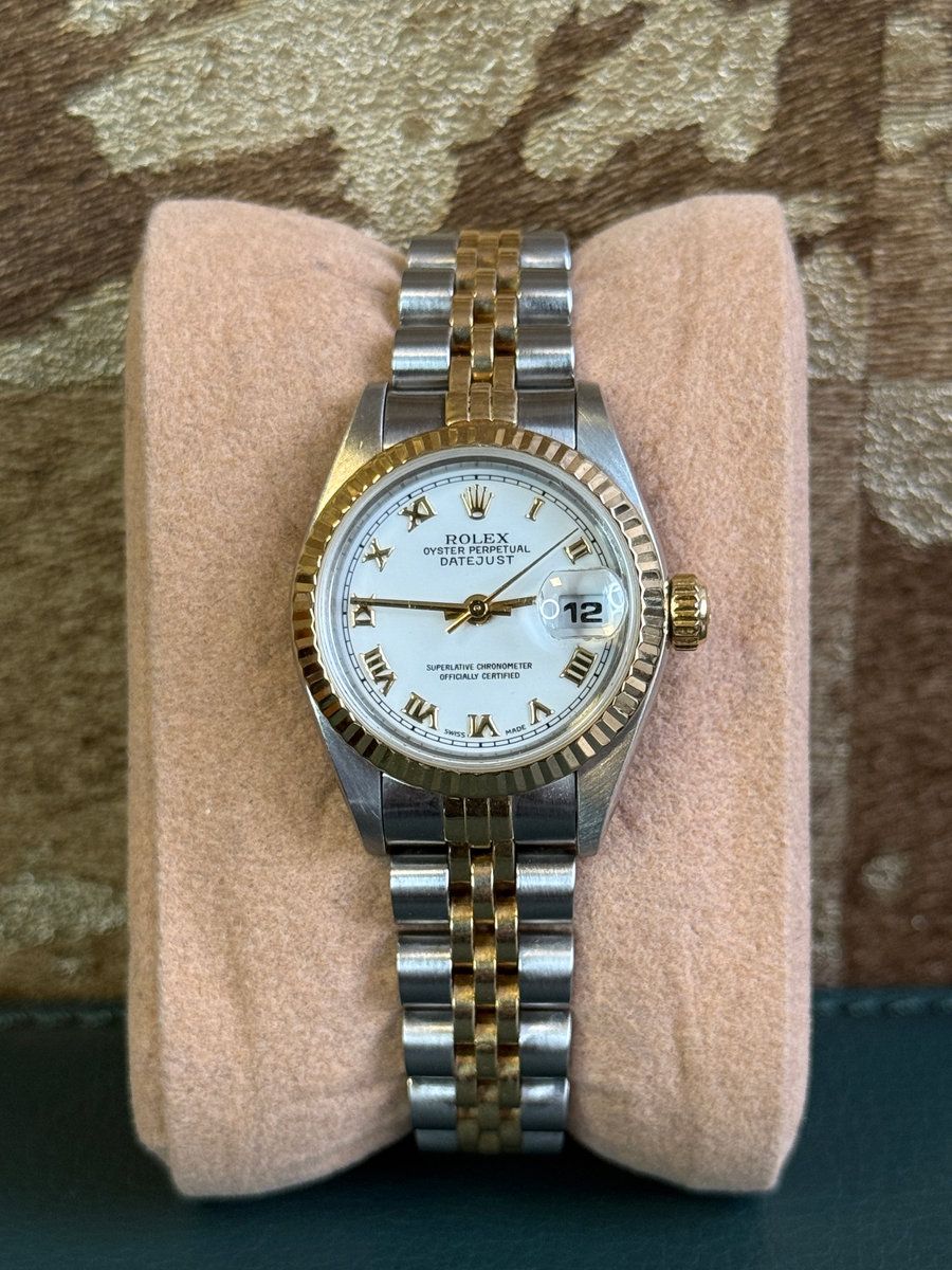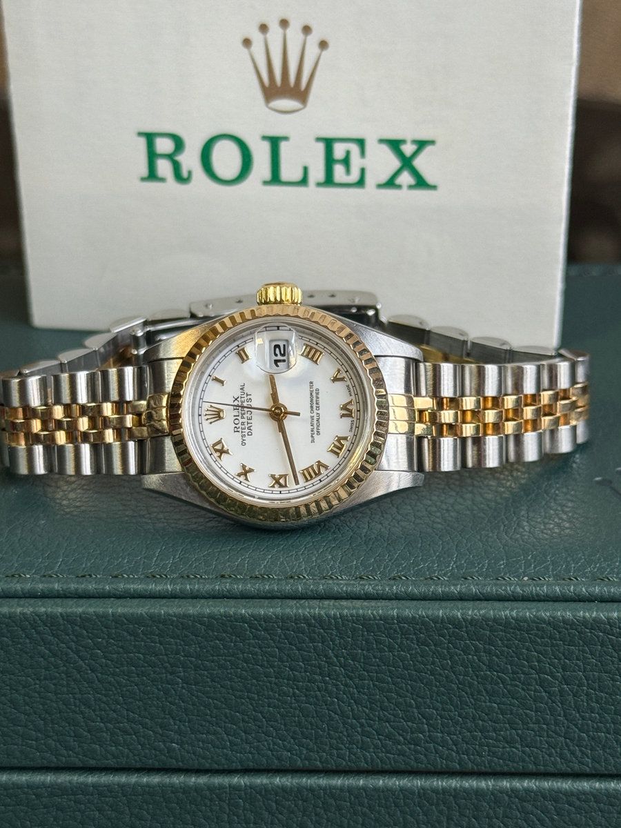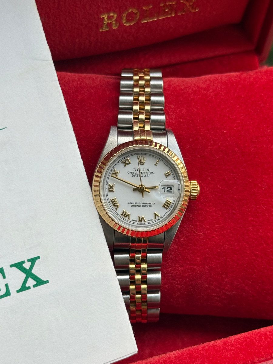 Rolex Lady Datejust 26mm two tone white roman dial. Rolex Lady Datejust 26mm two tone white roman dial Ref. 69173 Year: 1996 📦 & 📝 1 year warranty Very good condition