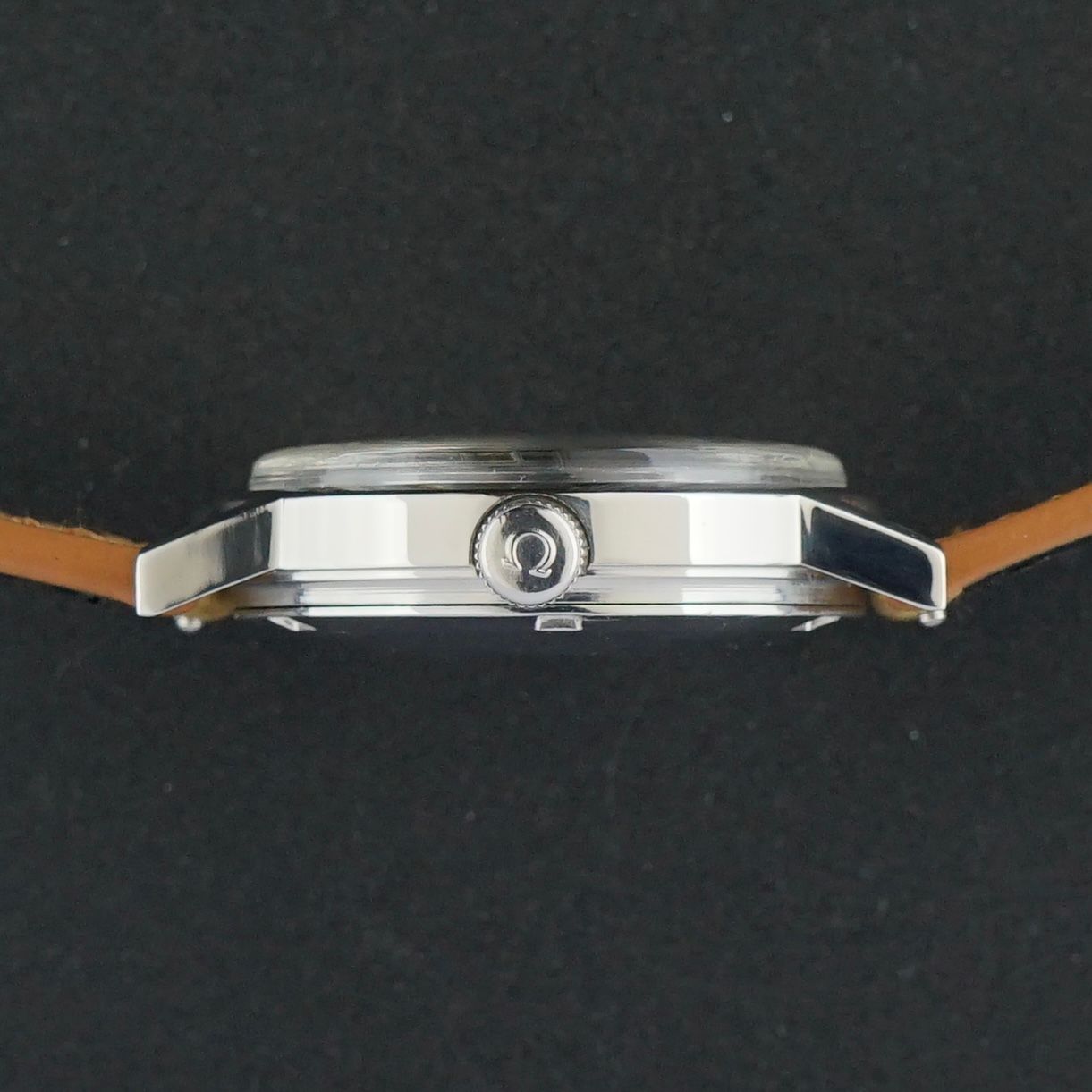 This vintage Omega Genève was produced in 1971. It features a 35 millimeter case and a light silver sunburst dial in incredible condition. The watch has a date window at the 3 o’clock position, due to the caliber 1481 automatic movement, which was overhauled in February 2026 and currently runs and functions well. The quick set date function by pushing in the crown does not work, however the date changes automatically after 24 hours and can be manually set by advancing the hands forward in 24 hour cycles. We have chosen to pair this watch with a matte brown leather strap, which we believe suits the watch very well. Overall, the condition is great, making this a perfect daily wearer.Year of production: 1971