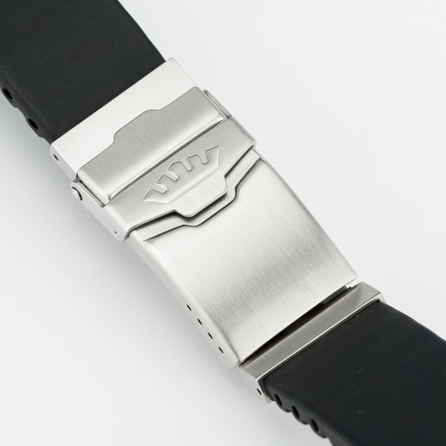 The strap is rubber, very comfortable, and the clasp is a deployant with an additional safety lock and micro-adjustment.