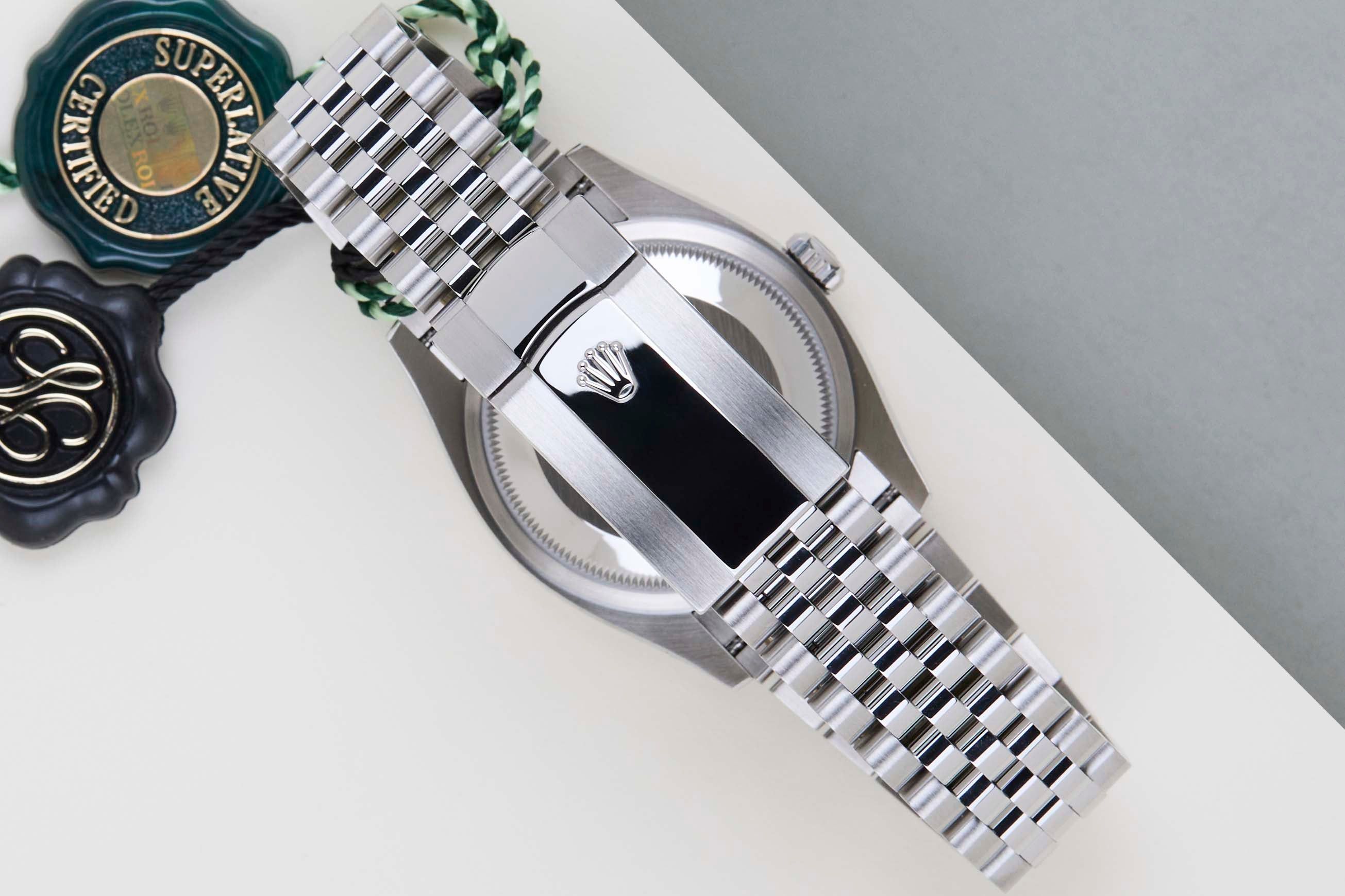 Este Datejust está hecho de una combinación de oro blanco de 18k y acero inoxidable, y está equipado con una pulsera Jubilee que cuenta con el Easylink. Esta extensión permite al usuario alargar o acortar la pulsera en 5 milímetros, mejorando la comodidad y usabilidad del reloj.