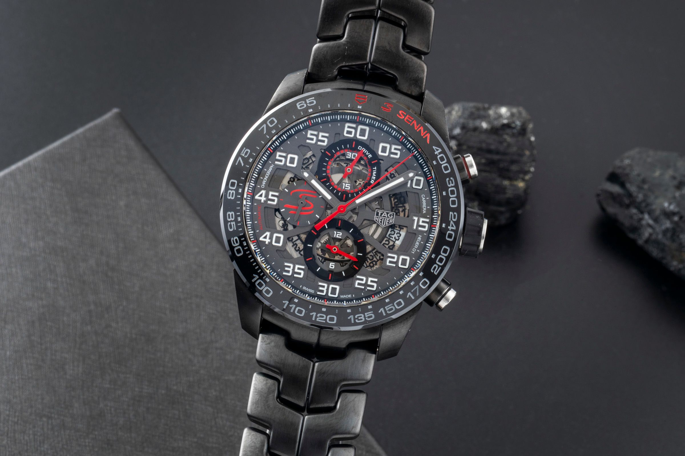 Alternative title: TAG Heuer CAR201AA.BA0714 Carrera Calibre Heuer 01 43 Stainless Steel / Black Ceramic / Alec Monopoly; Tag Heuer Carrera Senna Special Edition Stahl Keramik Ref. CAR2A1L.BA688 B&P [2600426]
