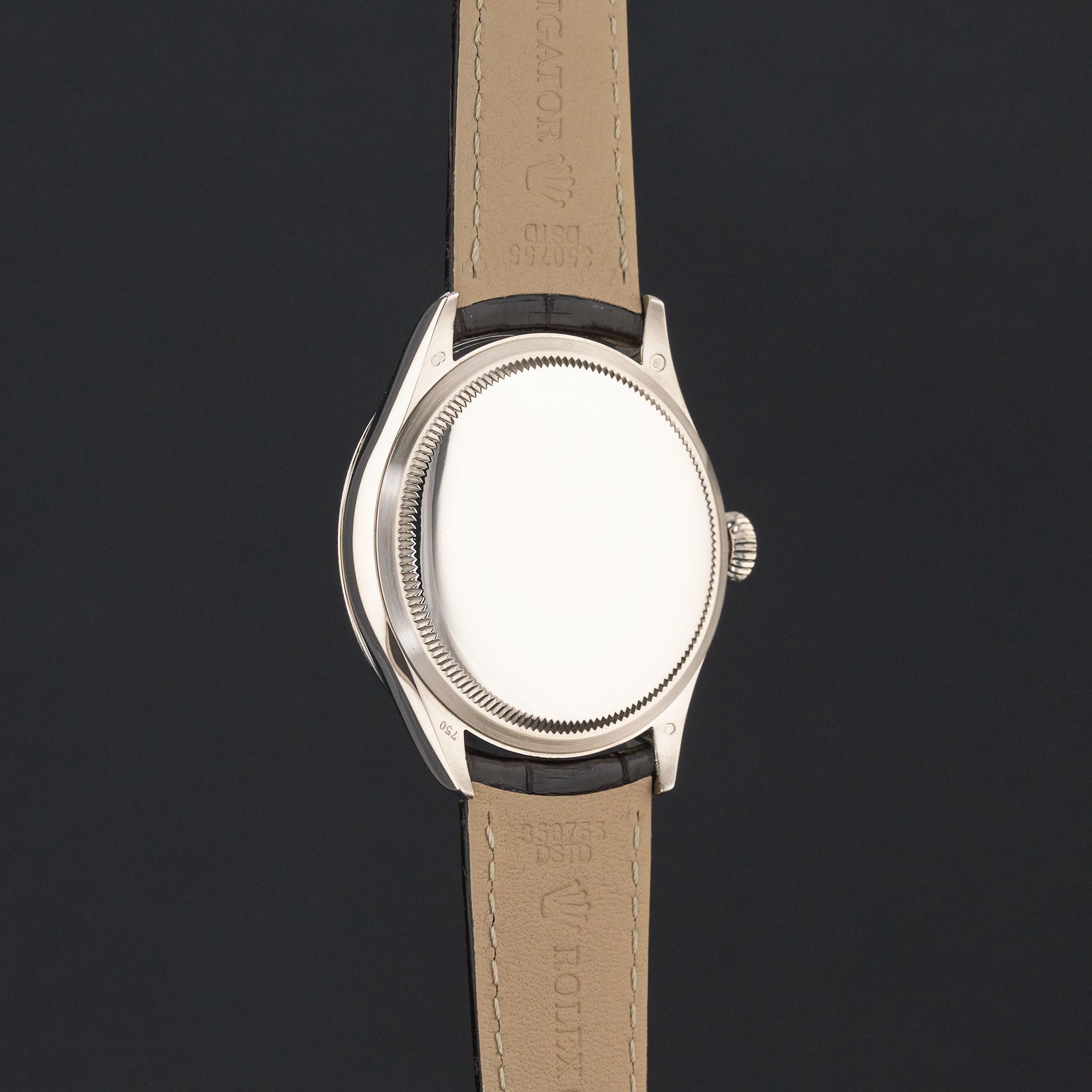Este Rolex Cellini Time 50509 cuenta con una esfera negra con números romanos y está fabricado en oro blanco de 18 quilates, con un año de producción de 2018.