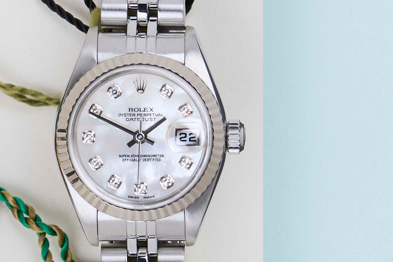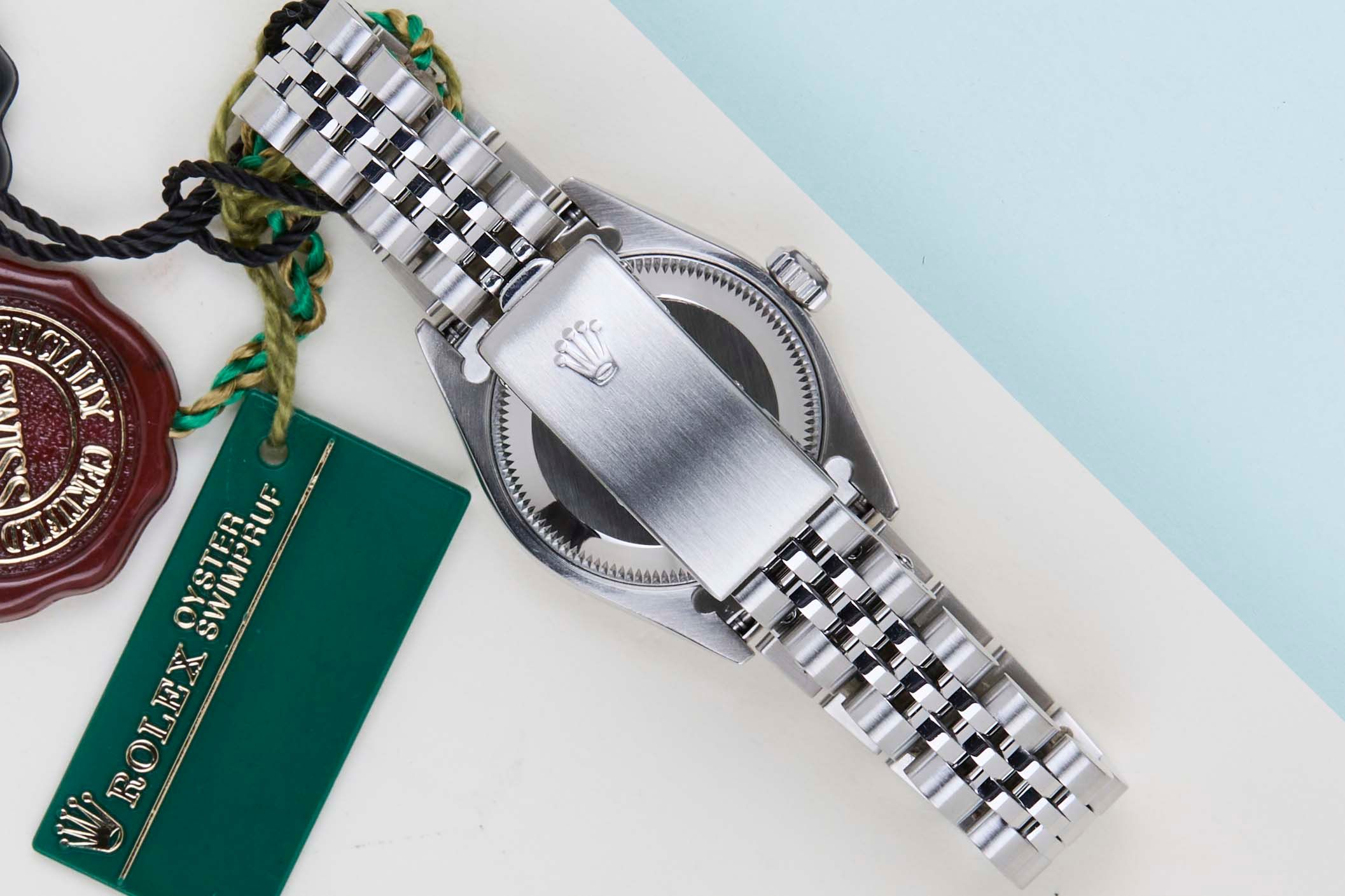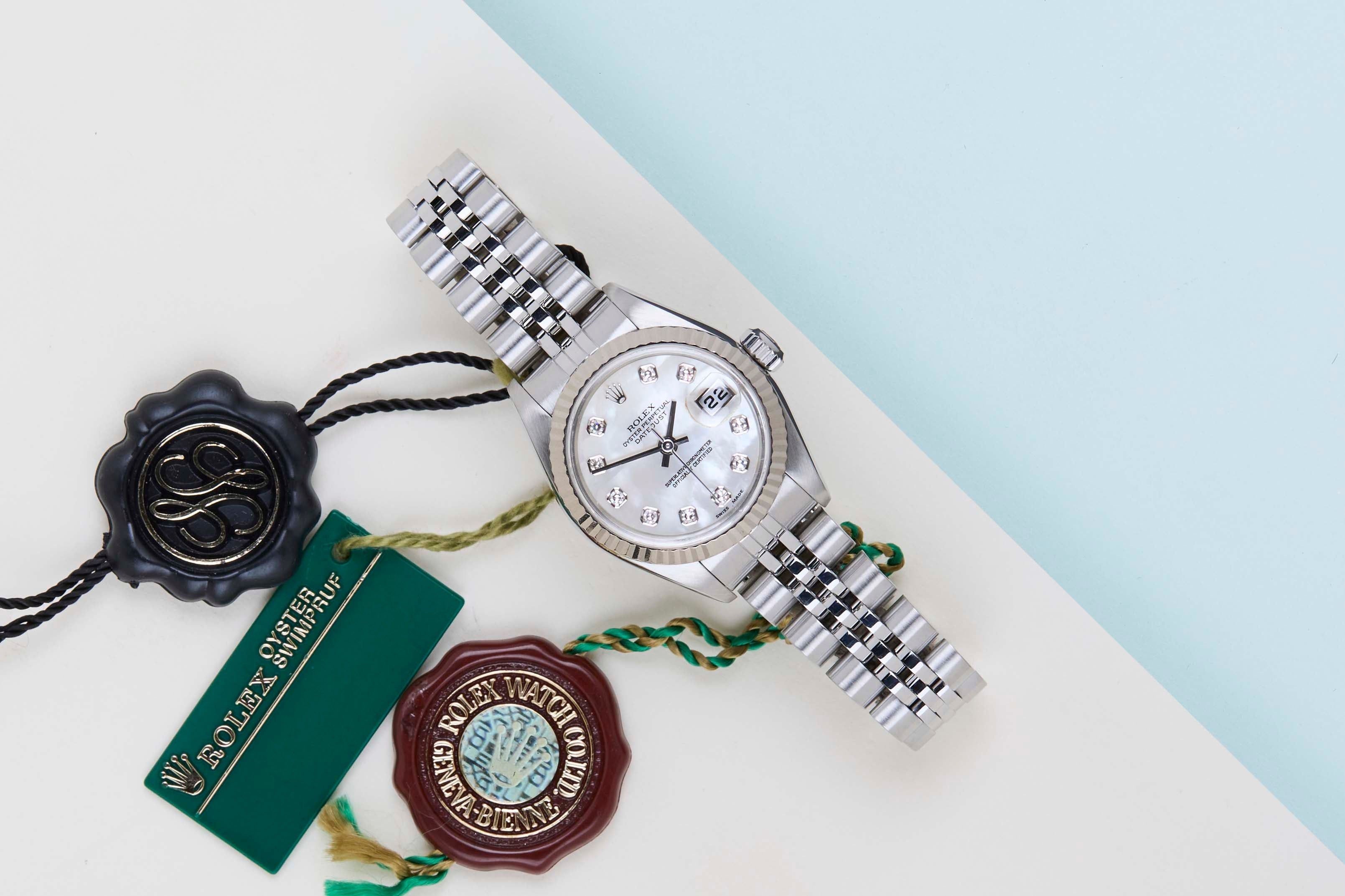 Full Set | Rolex Green Tag IncludedRolex introduced the original Datejust in 1945 to celebrate the company's 40th anniversary. Due to the enormous success, Rolex released the first Lady-Datejust in 1957.This Rolex Datejust 26 'Mother of Pearl Diamond Dial - Jubilee' dates back to September 2000.This Datejust is made of a combination of 18k White Gold and stainless steel and is fitted with a Jubilee bracelet.This Rolex Datejust 26 is in Mint condition and comes with the original Rolex Warranty Card and box. Furthermore, the watch has been serviced by our watchmakers and therefore it comes with One year of Steiner Warranty.