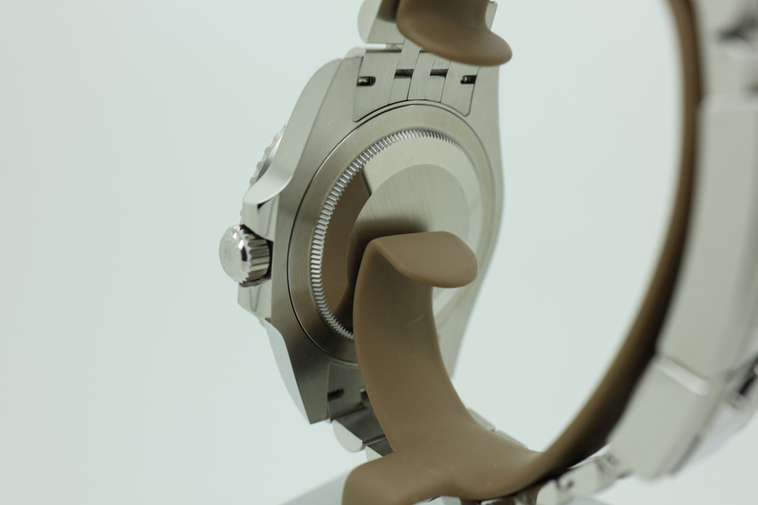 Este ejemplar se ofrece en estado sin pulir, como nuevo, preservando su acabado de fábrica nítido. Viene como un set completo que incluye caja, tarjeta de garantía, todas las etiquetas y protector de bisel, lo que lo hace especialmente atractivo para coleccionistas.