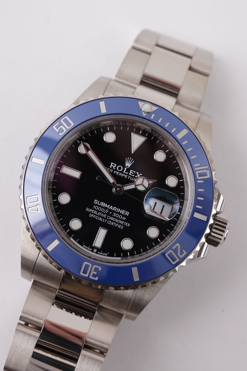 ¿Listo para tu nuevo reloj de ensueño? Quizás este hermoso Rolex Submariner Date hecho de oro blanco pronto estará en tu muñeca. Ya sea vintage o moderno, con más de 200 relojes en stock, siempre tenemos tu nuevo reloj de lujo disponible de inmediato, ya seas un comprador primerizo o tu colección de relojes necesite una nueva adición.