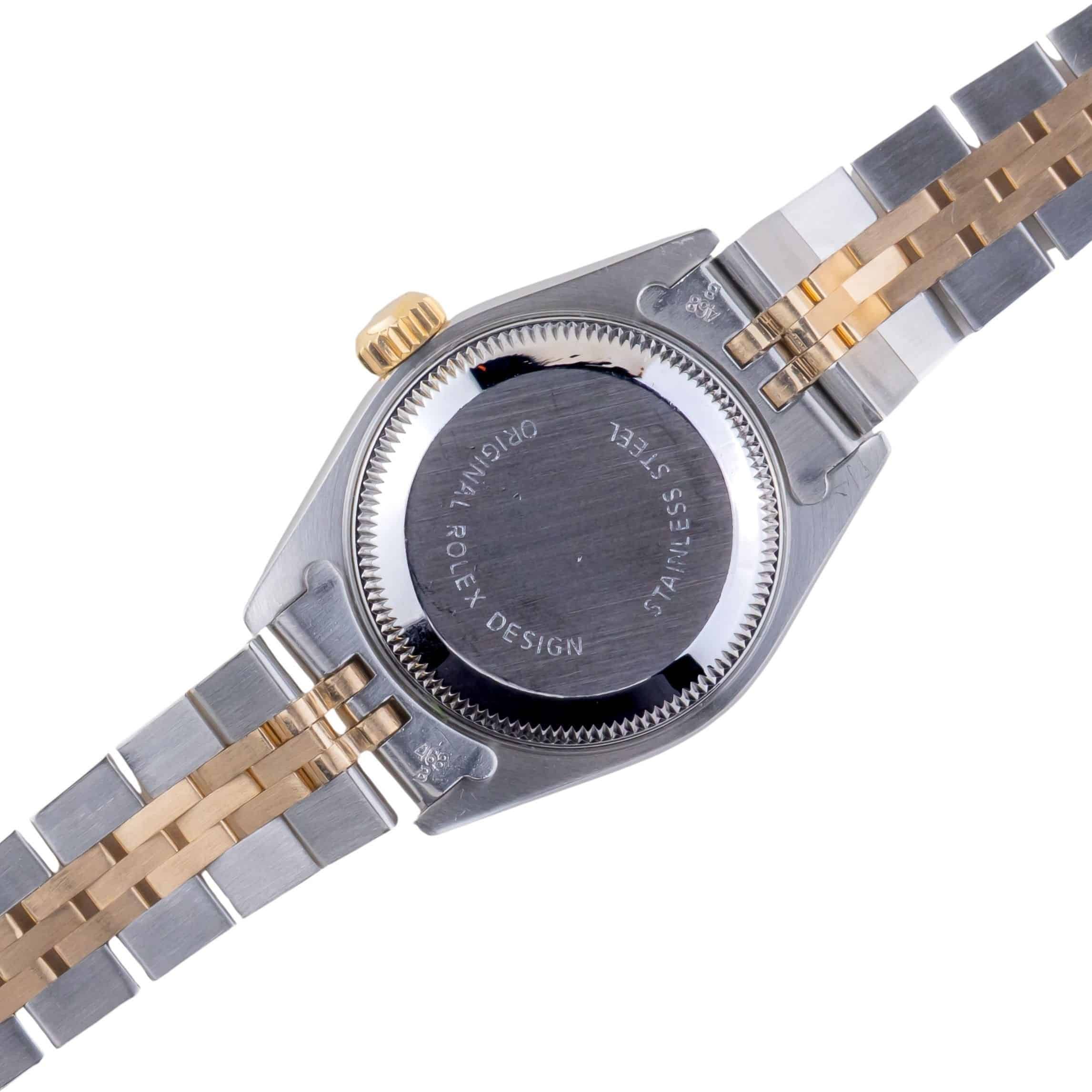 Rolex Oyster Perpetual Lady-Datejust reference 69173 from 1991 including full set. The Lady-Datejust 69173 measures a 26mm gold and stainless steel case, two-tone jubilee bracelet and fluted 14k gold bezel. This Lady-Datejust 69173 features an automatic movement caliber 2135 with quickset date function, a scratch resistance sapphire crystal and a black dial dial with diamond index.Every watch sold by Langedyk Vintage Watches is included with a LVW watch box, Authenticity report and free worldwide (insured) shipment. In addition, every pre-owned watch is offered with our 12-month warranty from the date of purchase.
