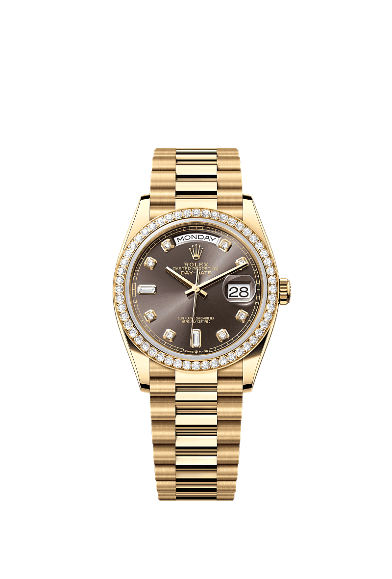 Rolex 128348RBR-0005 Day-Date 36 Yellow Gold / Diamond / Dark Grey-Diamond / President