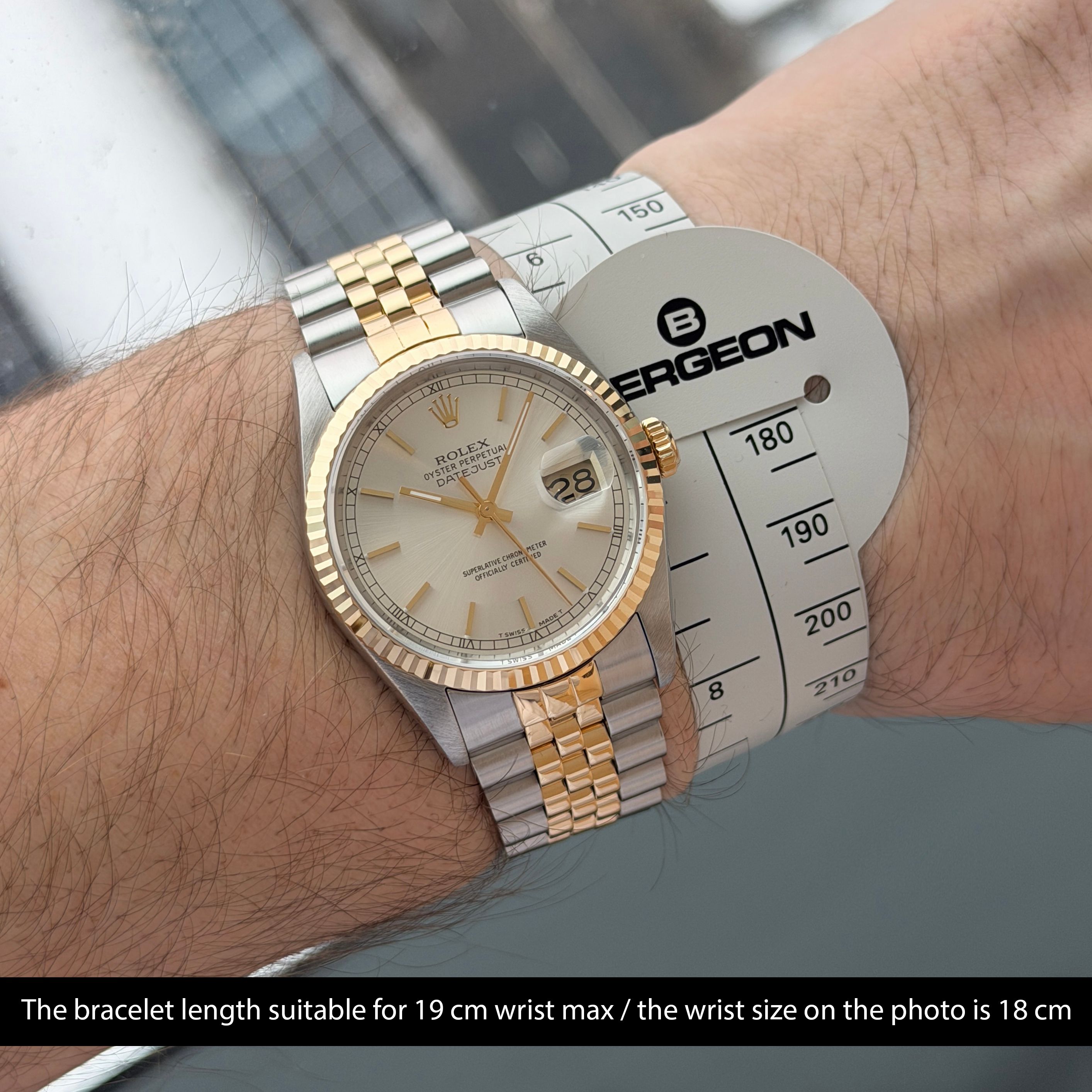 This Rolex Datejust 16233 features a Silver dial and is crafted from 18K yellow gold and stainless steel, with a production year of 1990.Case No: L38XXXX