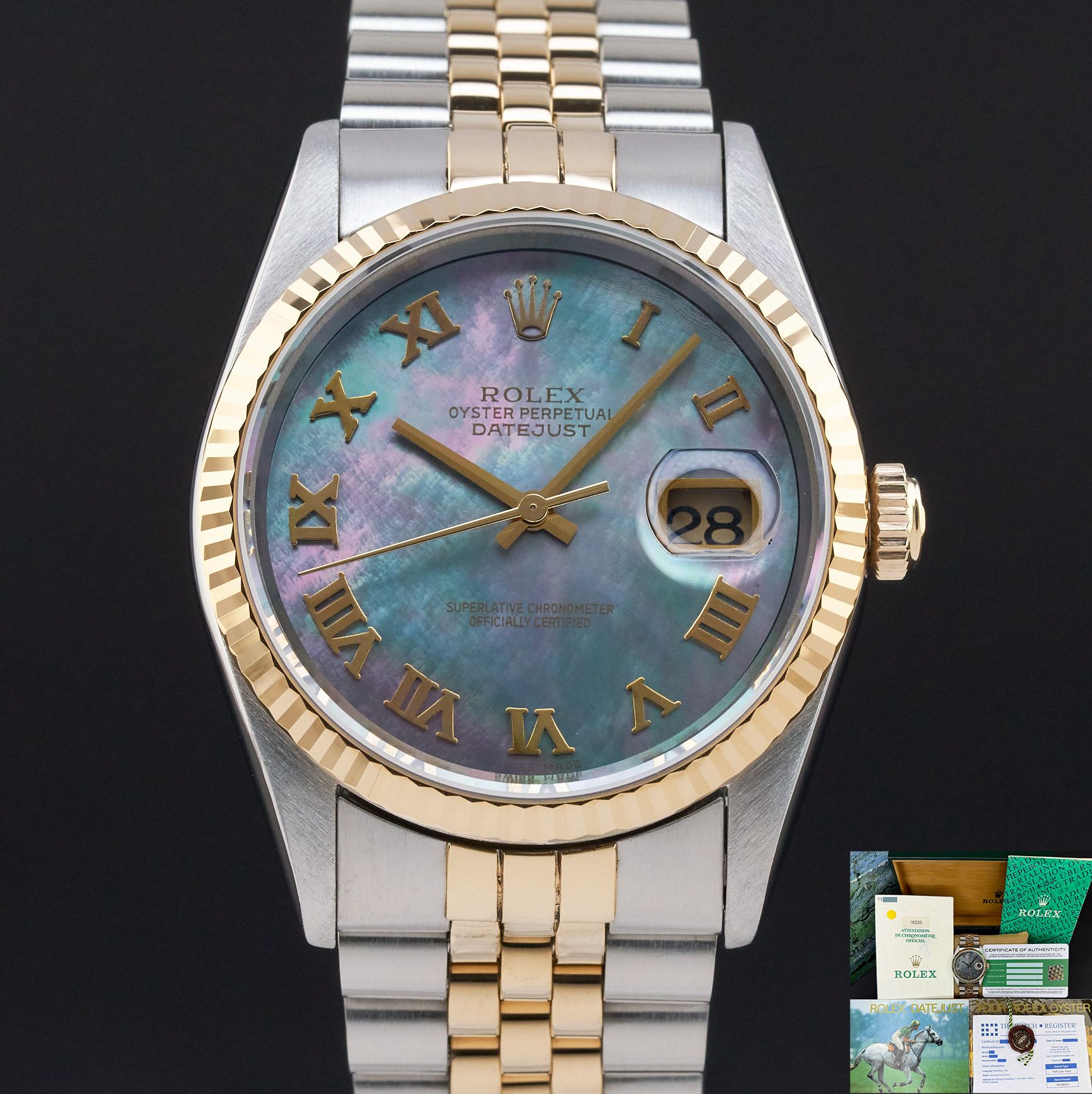 Rolex Datejust, 16233, 36mm, 1996, Two-Tone, Tahitian MOP Roman dial, Fullset, 1y warranty