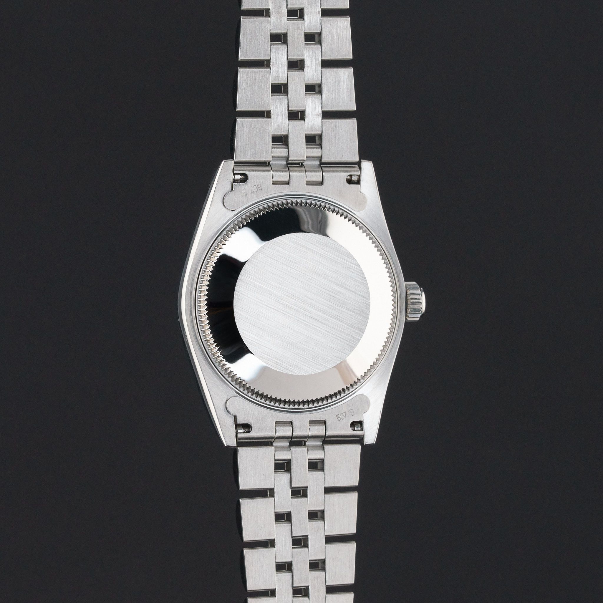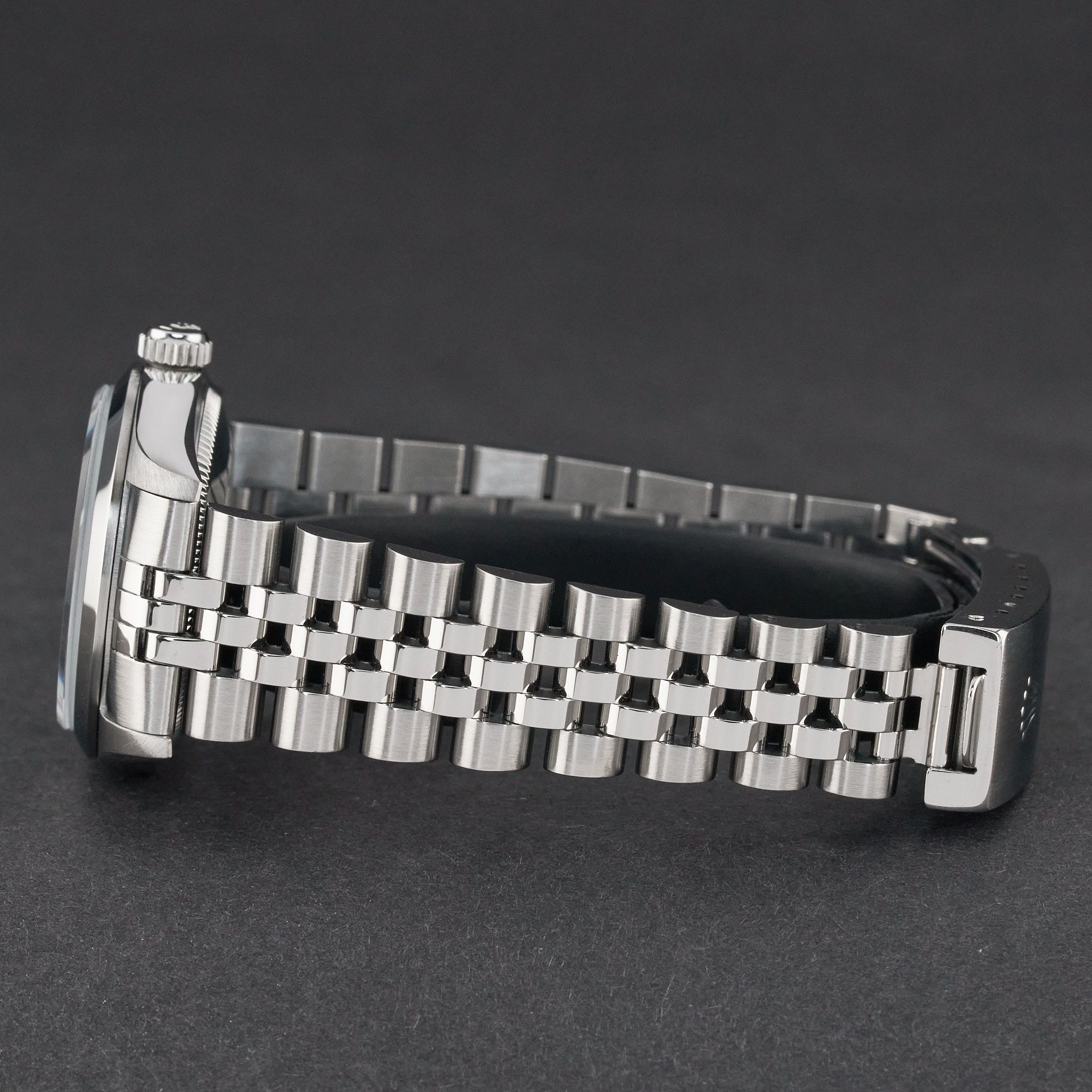 - Signos leves de uso como microarañazos o pequeños arañazos superficiales. La caja, el bisel y el brazalete conservan sus aristas definidas y su forma general. Puede haber sido pulido profesionalmente sin afectar a las líneas originales. Totalmente funcional mecánicamente.