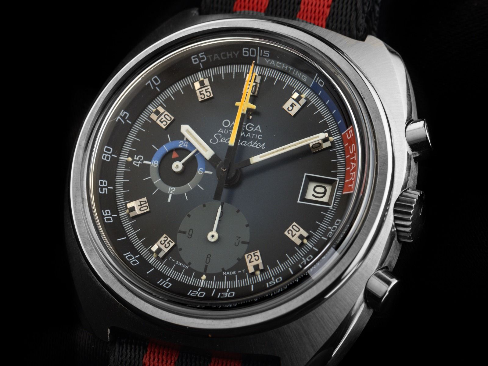 Omega Yachting Regatta Automatic Chronograph Armband TextilGehäuse Edelstahl poliert und satiniert, Gehäusedurchmesser ohne Krone 44mm, Gehäusehöhe 15,8mm. Unterglas Tachymeterskala. Armband Textil schwarz / rot, Anstoßbreite 21mm, Stiftschließe Edelstahl mit Hersteller-Logo. Zifferblatt dunkelblau mit arabischen Ziffern und aufgesetzten Indexen sowie weißen Zeigern. Uhrwerk Automatik, Chronograph, Omega Manufakturkaliber 1040 mit 22 Edelsteinen. Anzeige von Stunde und Minute über Zeiger aus der Mitte, kleine Sekunde bei 9 Uhr, Datumsanzeige mit Schnellverstellung bei 3 Uhr, Regatta Countdown und 24 Stunden Anzeige. Plexiglas gewölbt. Krone geriffelt mit Hersteller-Logo. Boden Edelstahl verschraubt mit Seamaster Relief. Gewicht der Uhr inklusive Armband 109g. Referenznummer: 176.010, Gehäusenummer: 35604XXX, Baujahr: 1972, ID: P232316000126H-6800, Artikelnummer: 10000084352. Mit Gangkontrolle und kompletter äußerlicher Aufarbeitung von Februar 2026. Original Omega Box und Watchregister Auszug von Februar 2026, The Watch Register Zertifikat / ohne Eintrag (Internationale Datenbank für verlorene oder gestohlene Uhren). Superschnäppchen, extrem seltenes Sammlerstück. Sehr guter Zustand. Lieferzeit sofort.