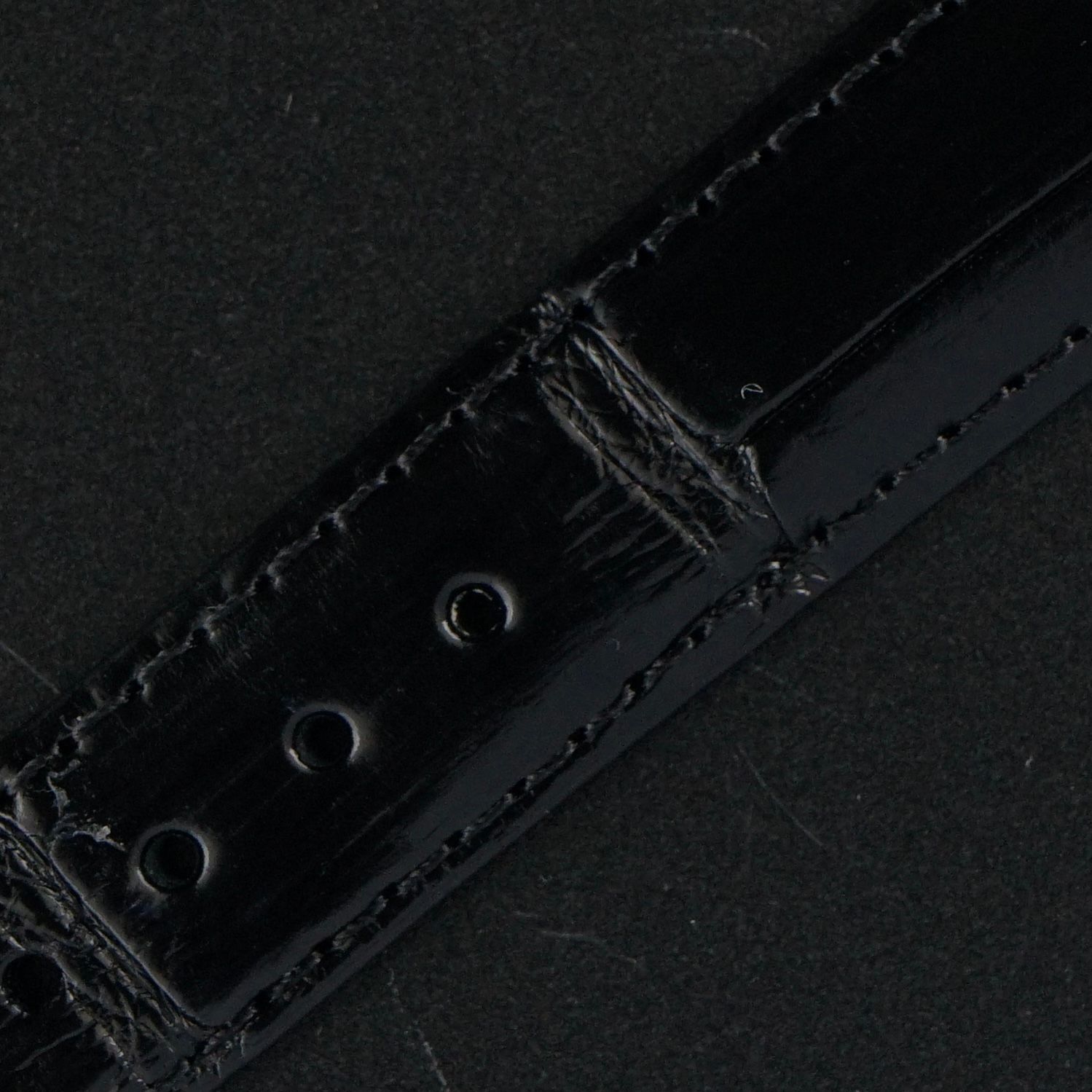 Strap: A top-grain black leather strap with a crocodile motif. (Fits a 12 to 20cm wrist)