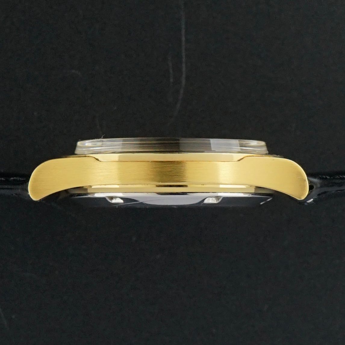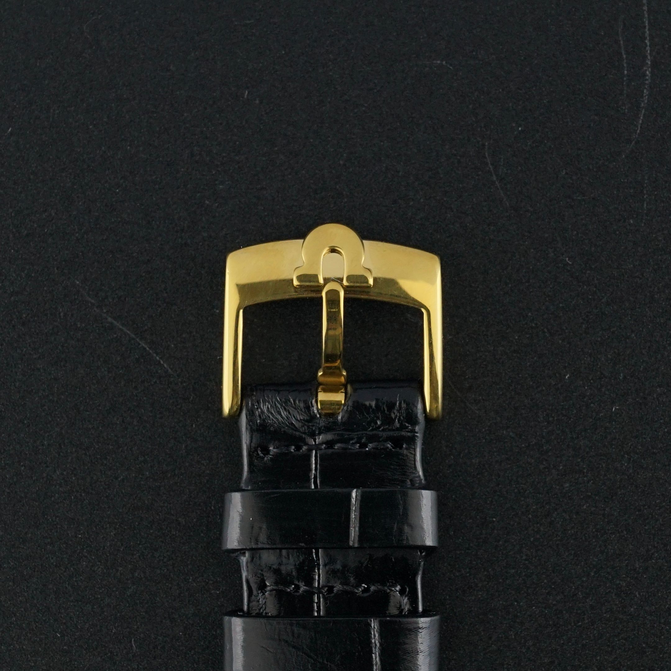 Hemos combinado este reloj con una correa de cuero negro de grano superior con un motivo de cocodrilo y un acabado brillante ligero, que le queda excelente al reloj. En general, esta es una pieza vintage bellamente conservada, completamente original, excepto por la correa de alta calidad recién instalada.