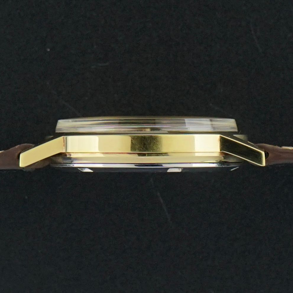 Hemos combinado el reloj con una correa de cuero marrón, que complementa perfectamente los tonos cálidos de la esfera. Con su muy buena condición general, este Omega vintage es ideal como reloj diario o como un elegante reloj de vestir.