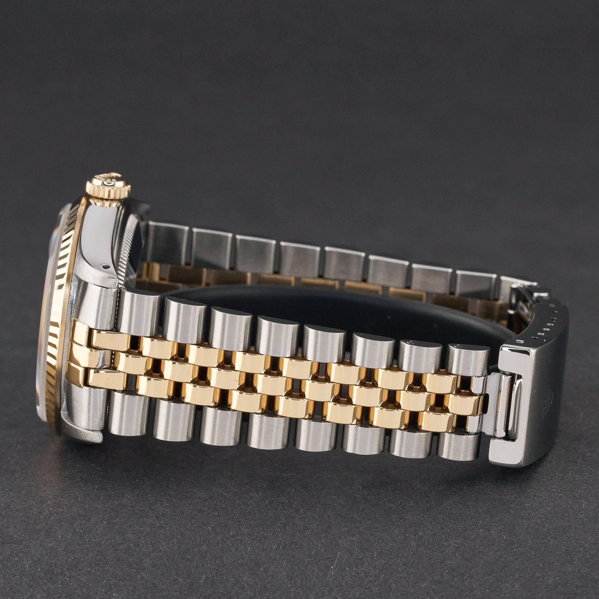 This Rolex Datejust 16233 features a Champagne small diamond dial and is crafted from 18K yellow gold and stainless steel, with a production year of 1991.Case No: X75XXXX