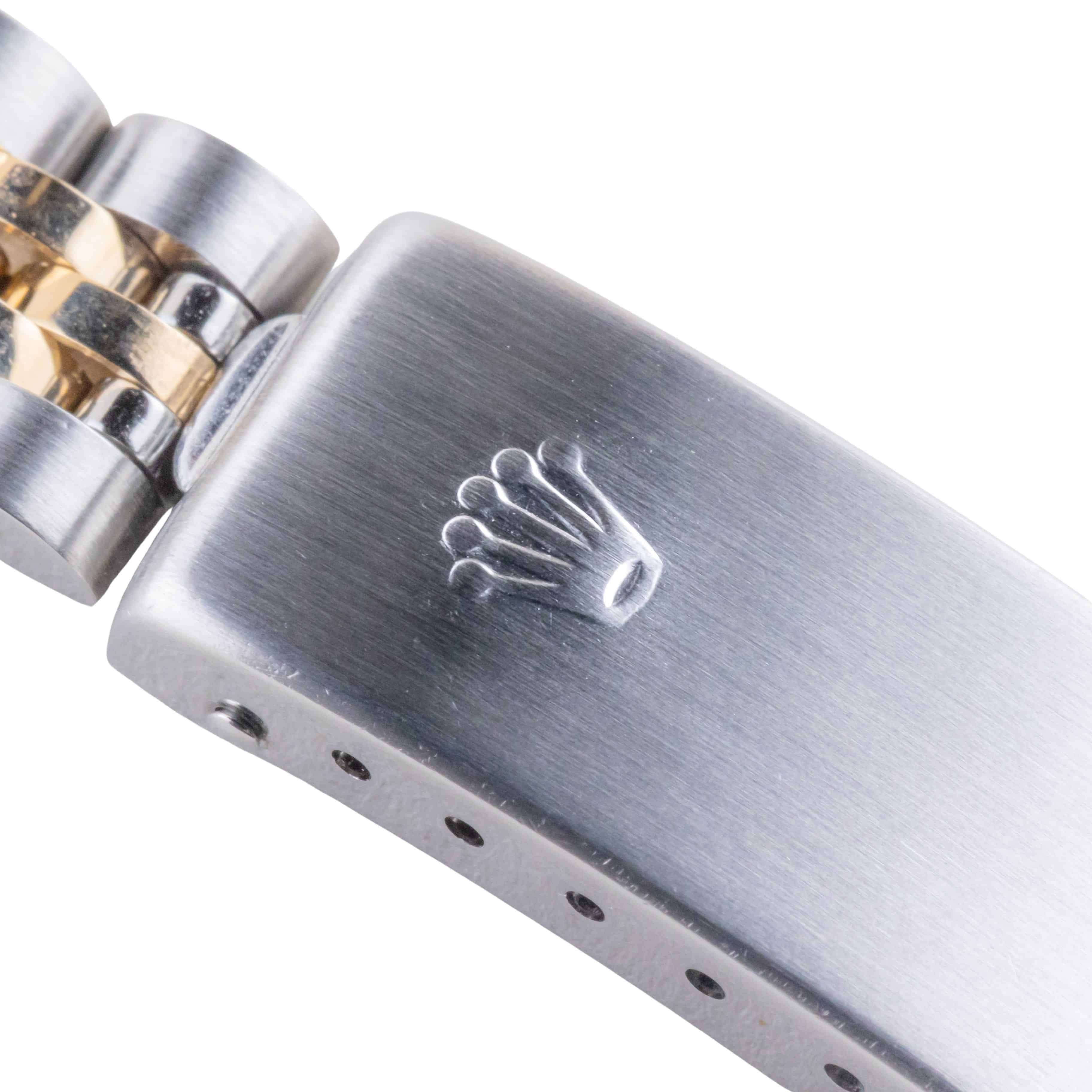 Rolex Oyster Perpetual Lady-Datejust referencia 79173 de 1996, incluyendo set completo. La Lady-Datejust 79173 tiene una caja de 26 mm en oro y acero inoxidable, una pulsera jubilee bicolor y un bisel acanalado de oro de 18k. Esta Lady-Datejust 79173 cuenta con un movimiento automático calibre 2235 con función de fecha rápida, un cristal de zafiro resistente a los arañazos y una esfera de color crema con diseño de pirámide.