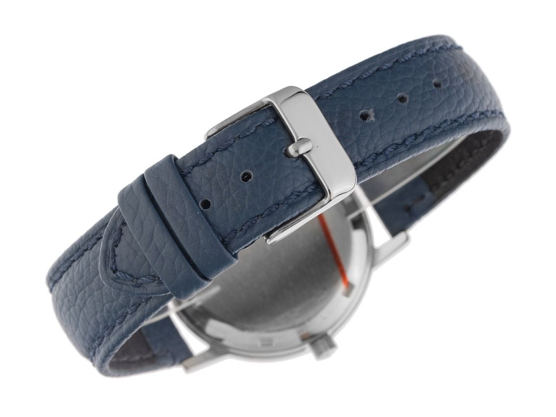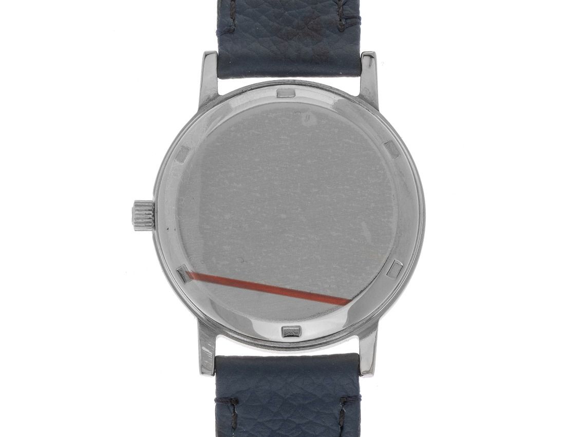 Caja de acero pulido, diámetro de la caja sin corona 35mm, altura de la caja 10,6mm. Correa de piel azul oscuro con costura decorativa, ancho de asas 18mm, cierre de pasador de acero. Esfera de color plateado con pátina, índices de acero aplicados y agujas de acero. Movimiento automático, calibre Omega 1022 con 23 rubíes. Indicador de hora, minuto y segundo a través de agujas centrales, indicador de día de la semana en inglés y fecha con ajuste rápido a las 3 en punto. Cristal acrílico abombado. Corona estriada. Fondo de acero atornillado. Peso del reloj incluyendo la correa 44g. Número de referencia: 1660163, año de fabricación: 1978, número de caja: 41264XXX ID: P239016500126H-3100, número de artículo: 10000084524. Con revisión de movimiento nueva y restauración completa exterior en febrero de 2026. Caja original de Omega y extracto del registro de relojes de enero de 2026, certificado de The Watch Register / sin entrada (base de datos internacional de relojes perdidos o robados). Superoferta, pieza de colección extremadamente rara. Muy buen estado. Tiempo de entrega inmediato.