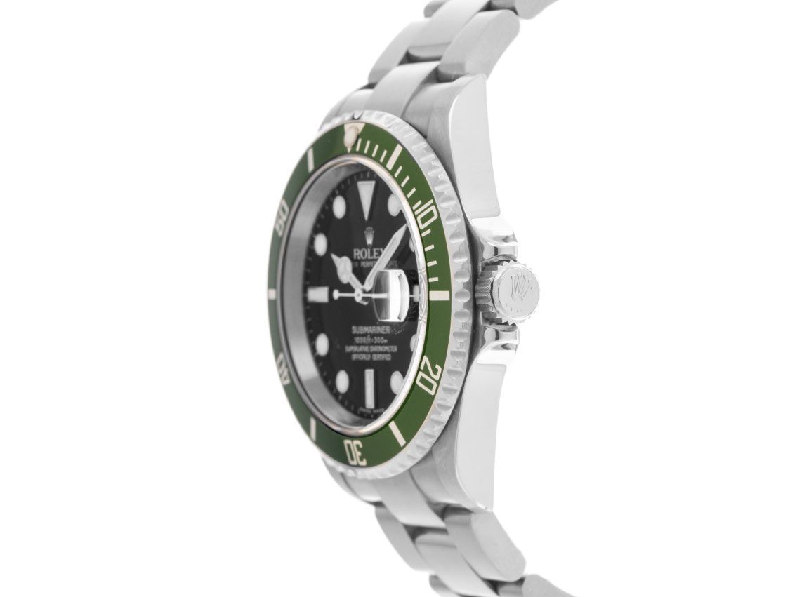 Caja de acero inoxidable pulido y satinado, diámetro de la caja sin corona 40mm, altura de la caja 12,6mm. Bezel de acero inoxidable estriado con inserto de aluminio verde, escala de 60 minutos, unidireccional. Pulsera Oyster de acero inoxidable pulido y satinado, cierre desplegable de seguridad Rolex de acero inoxidable con logo del fabricante. Esfera negra con índices y puntos en oro blanco aplicados, así como manecillas en oro blanco. Movimiento automático, cronómetro con certificado, calibre de manufactura Rolex 3135 con 31 rubíes. Indicador de hora, minuto y segundo a través de manecillas centrales con parada de segundero para un ajuste preciso de la hora, indicador de fecha con ajuste rápido bajo lupa a las 3 en punto. Cristal de zafiro resistente a los arañazos. Corona atornillada con protección lateral y logo del fabricante. Fondo de acero atornillado. Peso del reloj incluyendo la pulsera 135g, longitud de la pulsera incluyendo la caja 190mm. Número de referencia: 16610LV, número de caja: D086XXX, ID: P2640211000326H-14900, número de artículo: 10000085048. Con control de marcha y reacondicionamiento exterior completo de marzo de 2026. Caja original de Rolex con caja exterior y documentos de garantía de julio de 2005, LC 010 / Suiza, así como descripción, estuche de cuero, ancla Rolex, sello de cronómetro Rolex y extracto del registro de relojes de marzo de 2026, certificado de The Watch Register / sin entrada (base de datos internacional de relojes perdidos o robados), Full Set. Inversión con potencial de aumento de valor, de primera mano. Muy buen estado. Tiempo de entrega inmediato.