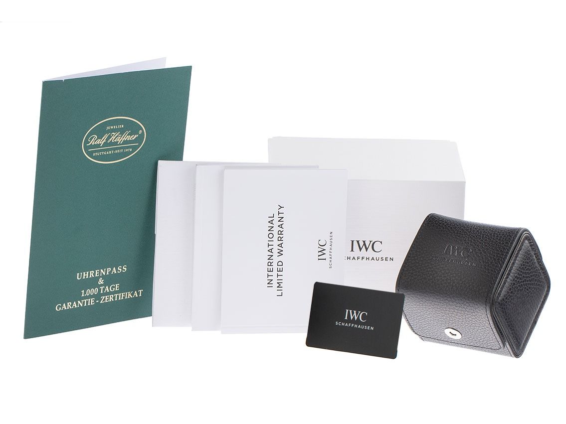 Caja de acero pulido, diámetro de la caja sin corona 40mm, altura de la caja 9,5mm. Bisel de acero liso y pulido. Correa de cocodrilo verde oscuro con costura decorativa, ancho de asas 20mm, cierre de pasador de acero con logo del fabricante. Esfera plateada con índices en oro rosa aplicados y números romanos, así como agujas en oro rosa. Movimiento automático, calibre IWC 35111 con 25 piedras preciosas, reserva de marcha de aproximadamente 42 horas. Indicador de hora, minuto y segundo a través de agujas centrales con parada de segundos para un ajuste preciso de la hora, indicador de fecha con ajuste rápido a las 3 en punto. Cristal de zafiro resistente a los arañazos, abombado y antirreflejos por ambas caras. Peso del reloj incluyendo la correa 59g, corona con logo del fabricante. Fondo de acero atornillado 6 veces y grabado. Resistente al agua hasta 3 ATM. Número de referencia: IW356517, ID: ST116075060326H-5300, número de artículo: 10000085109. Caja original de IWC Schaffhausen con caja exterior y documentos de garantía de marzo de 2026, así como descripción, Full Set. Sin usar. Tiempo de entrega inmediato.