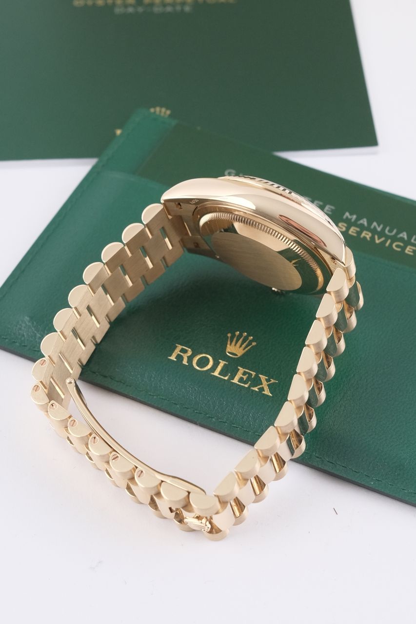 **Watch Description**Ready for your new dream watch? Perhaps this beautiful Rolex Day-Date 36 made of Yellow gold will soon be on your wrist. Whether vintage or modern - with over 200 watches in stock, we always have your new luxury watch available for you immediately - whether you are a first-time buyer or your watch collection needs a new addition.