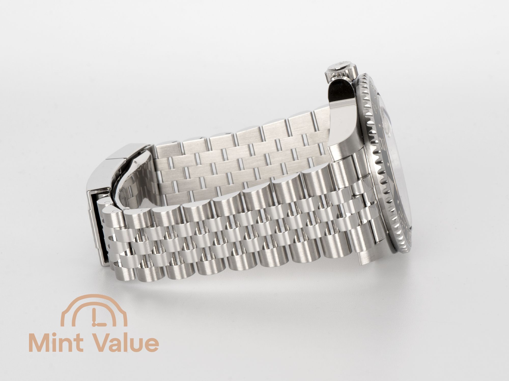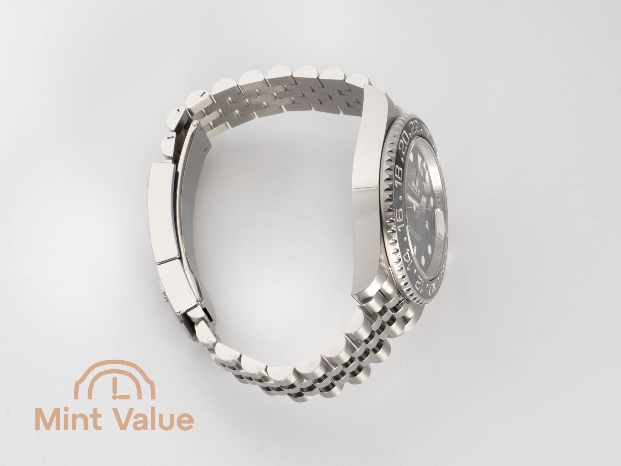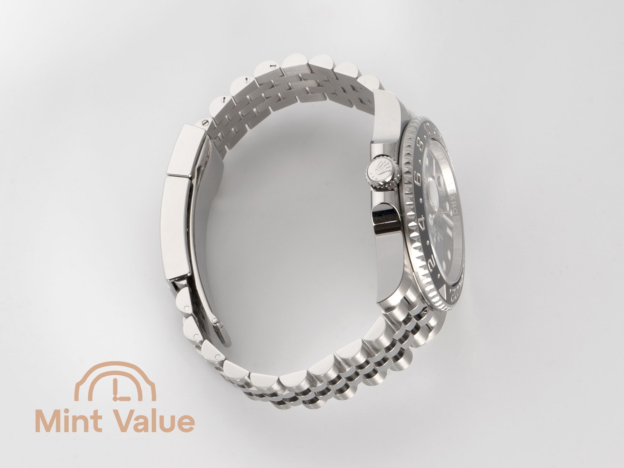 recognized among collectors as the “Bruce Wayne” for its refined black-and-grey Cerachrom bezel, marries travel-watch heritage with modern understatement. The 40 mm Oystersteel case, paired with the Jubilee bracelet, anchors an aesthetic of quiet confidence — designed for those who traverse borders yet appreciate discreet elegance.