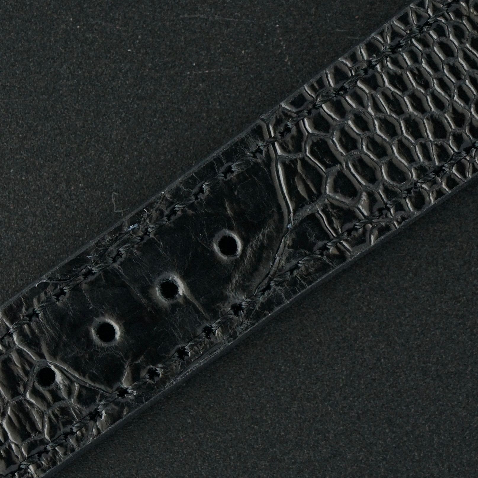 Strap: A black grade III leather strap with a crocodile motif. (Fits a 12 to 20cm wrist)