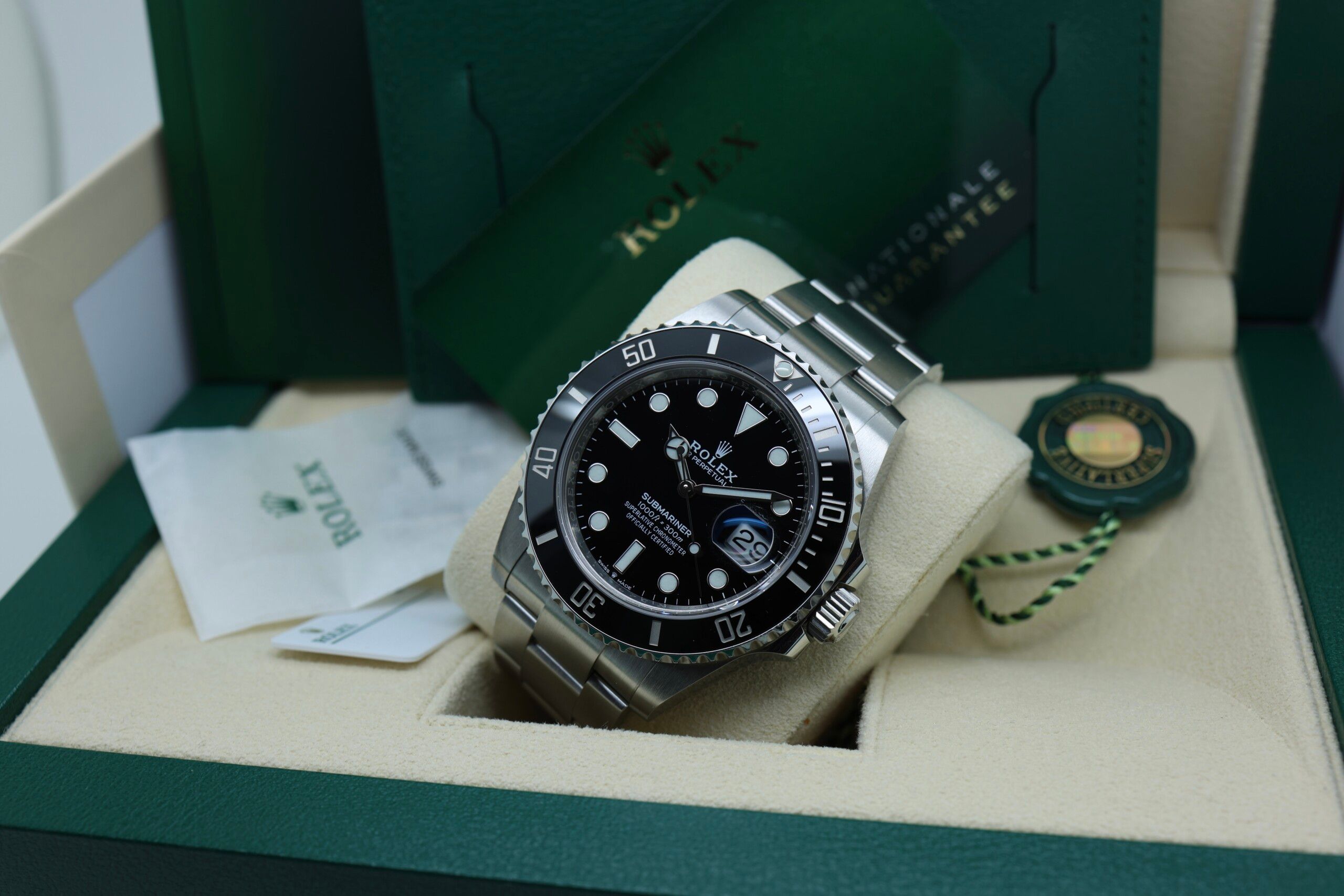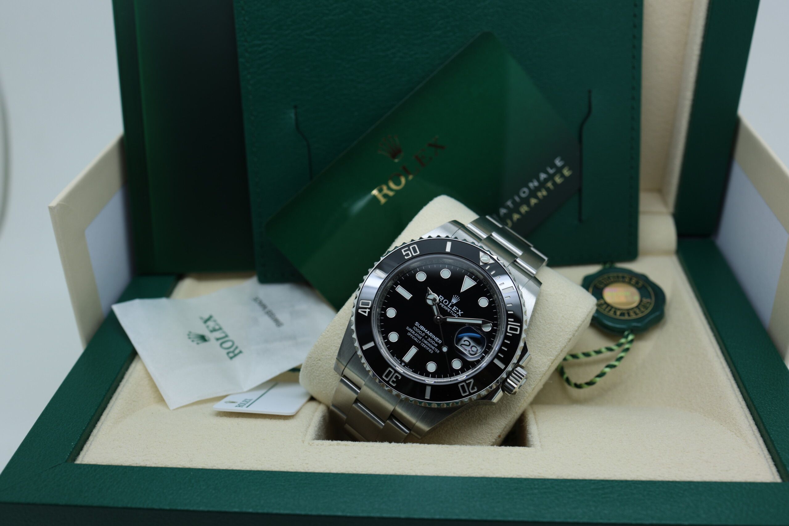 This example dates from 2021 and is presented in perfect condition. The watch is offered as a complete full set, including the original Rolex box, warranty card, and accompanying accessories.