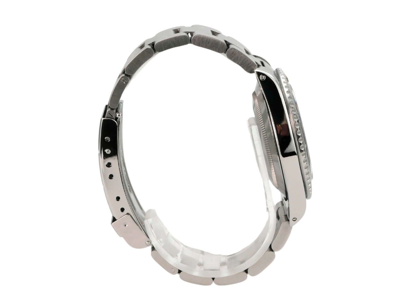 Caja hecha de acero inoxidable pulido y satinado, diámetro de la caja 40 mm, bisel de acero inoxidable con inserto negro, escala de 60 minutos y punto luminoso, rotación unidireccional, pulsera Oyster de acero inoxidable satinado con cierre de seguridad plegable, esfera negra con marcadores luminosos aplicados y puntos luminosos, manecillas luminosas, movimiento automático, cristal de zafiro resistente a los arañazos, corona atornillada con protección lateral, fondo atornillado de acero inoxidable, resistente al agua hasta 30 bar.