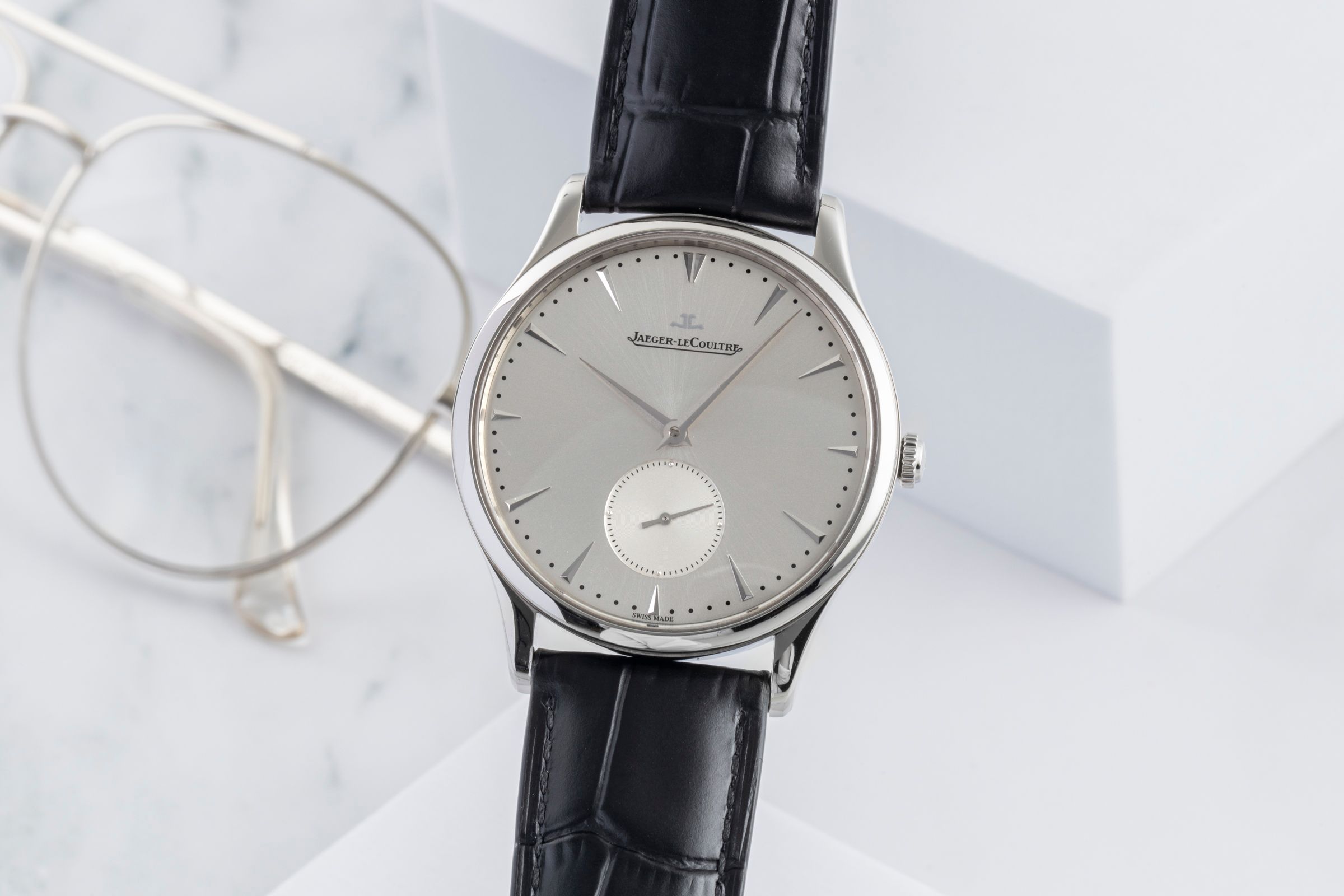 Alternative title: Jaeger-LeCoultre Q1358420 Master Ultra Thin Small Second 40; Jaeger LeCoultre Master Ultra Thin Stahl Ref. Q1358420 174.8.90.S Papiere 2012 [2601289]