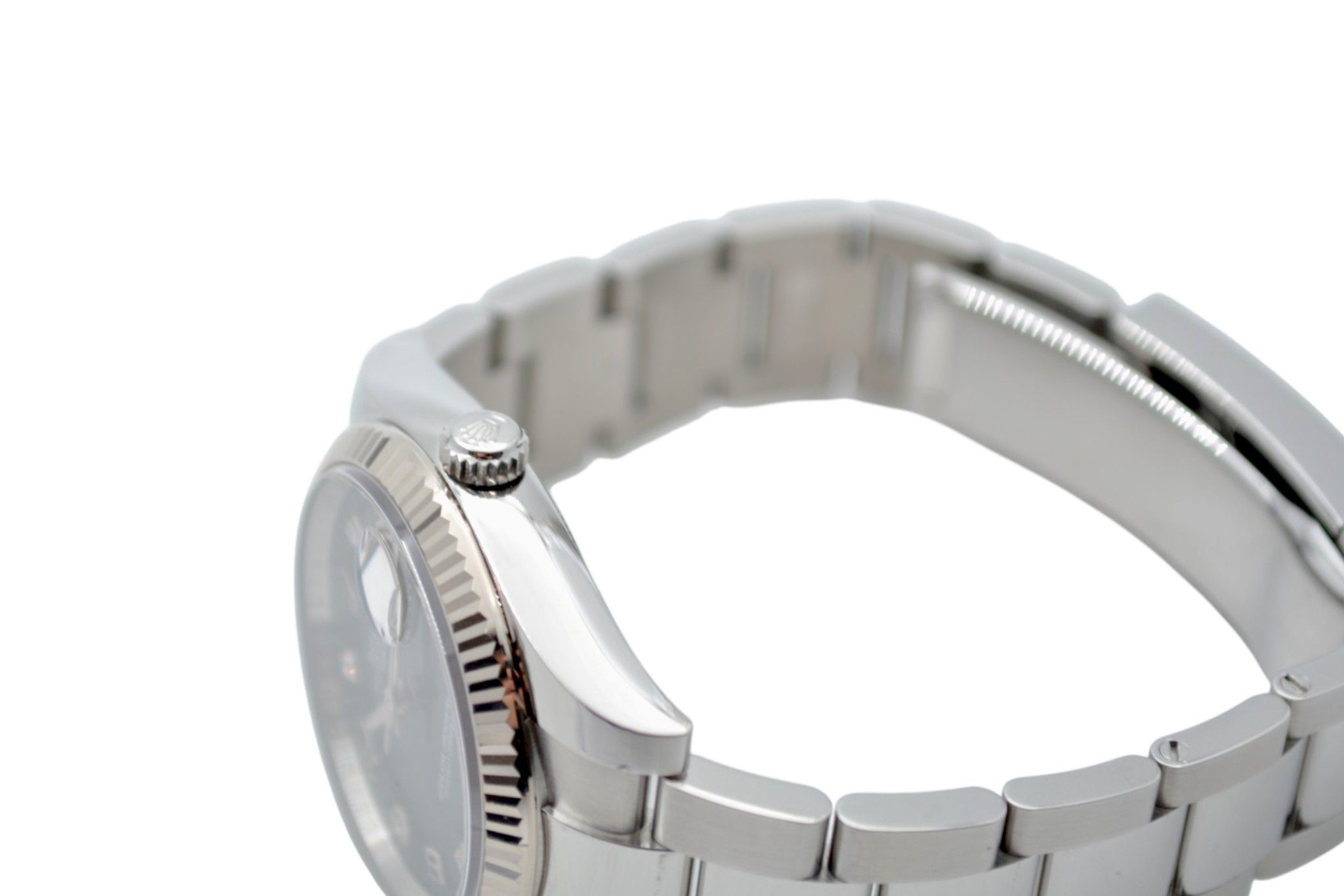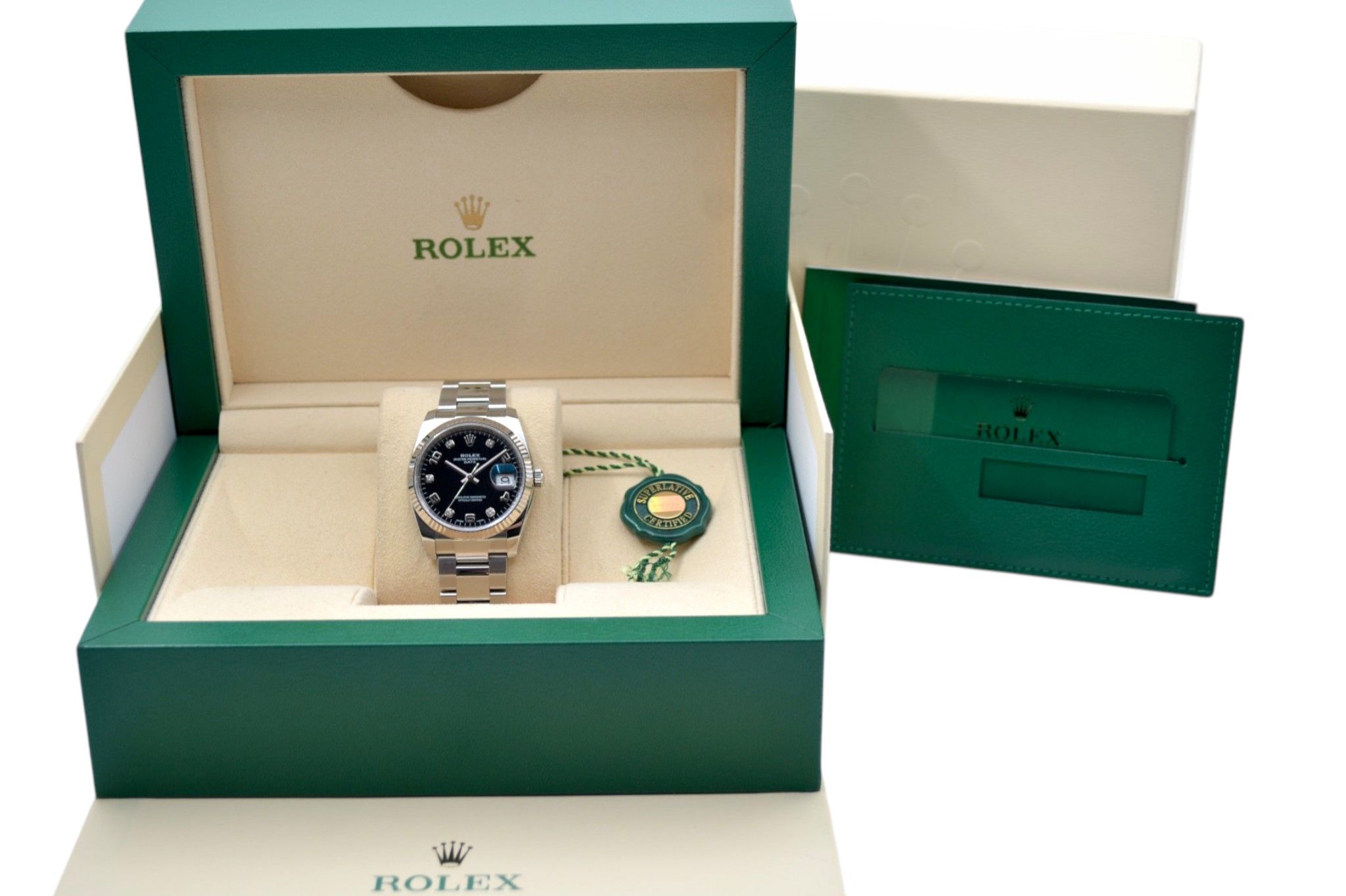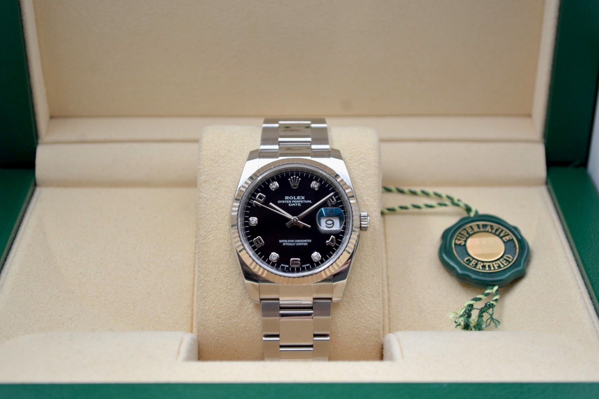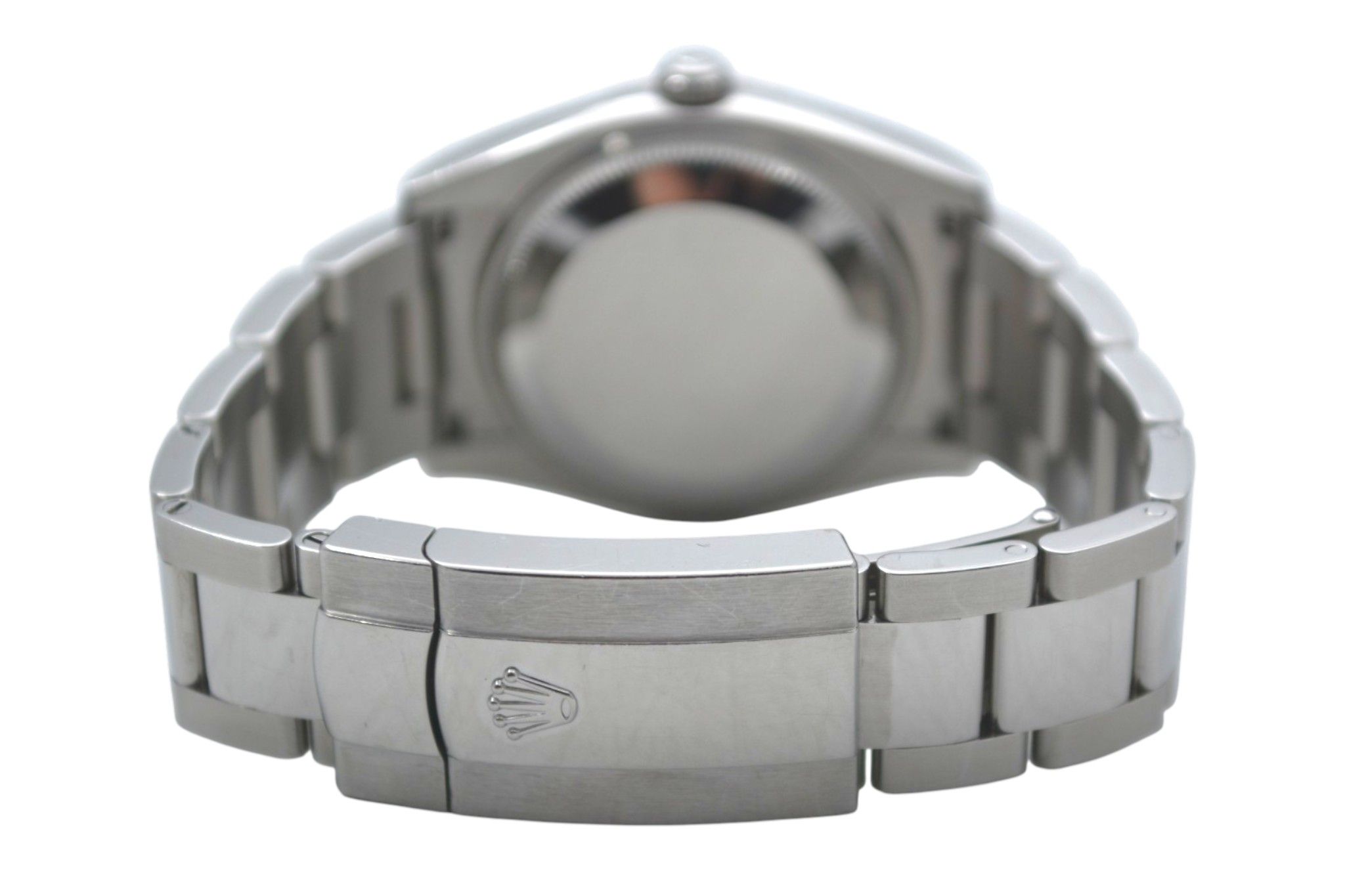 Crafted in stainless steel with an 18-carat white gold fluted bezel, the Oyster Perpetual Date Ref. 115234 embodies a subtle luxury that never seeks attention yet never goes unnoticed. The fluted bezel, one of Rolex’s most recognizable design signatures, catches the light with every movement, adding depth and character to the watch’s classic silhouette. Its 34 mm Oyster case is perfectly balanced — elegant on the wrist yet robust in construction. Built according to Rolex’s uncompromising standards, the case offers exceptional durability and water resistance up to 100 meters, protected by the famous screw-down crown and solid case architecture.
